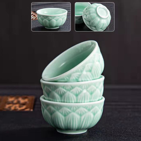 Чаша із чаочжоуського селадону. Прекрасно прокреслений рельєф у вигляді пелюсток лотоса.