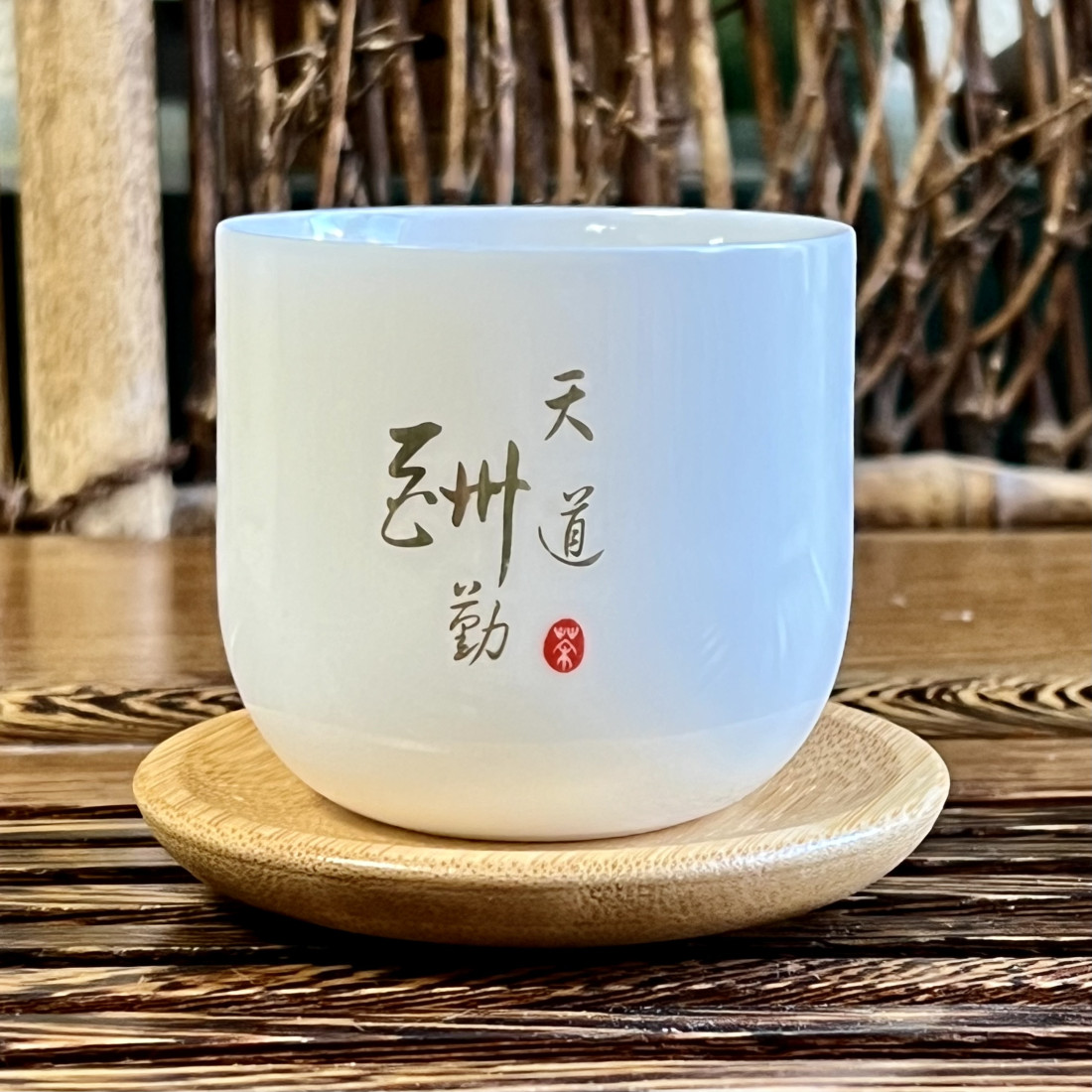 Для даної чаші центральний ієрогліф – винагорода 酬. Вся фраза звучить так: Небеса винагородять ваші зусилля 天道酬勤.