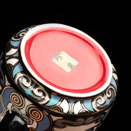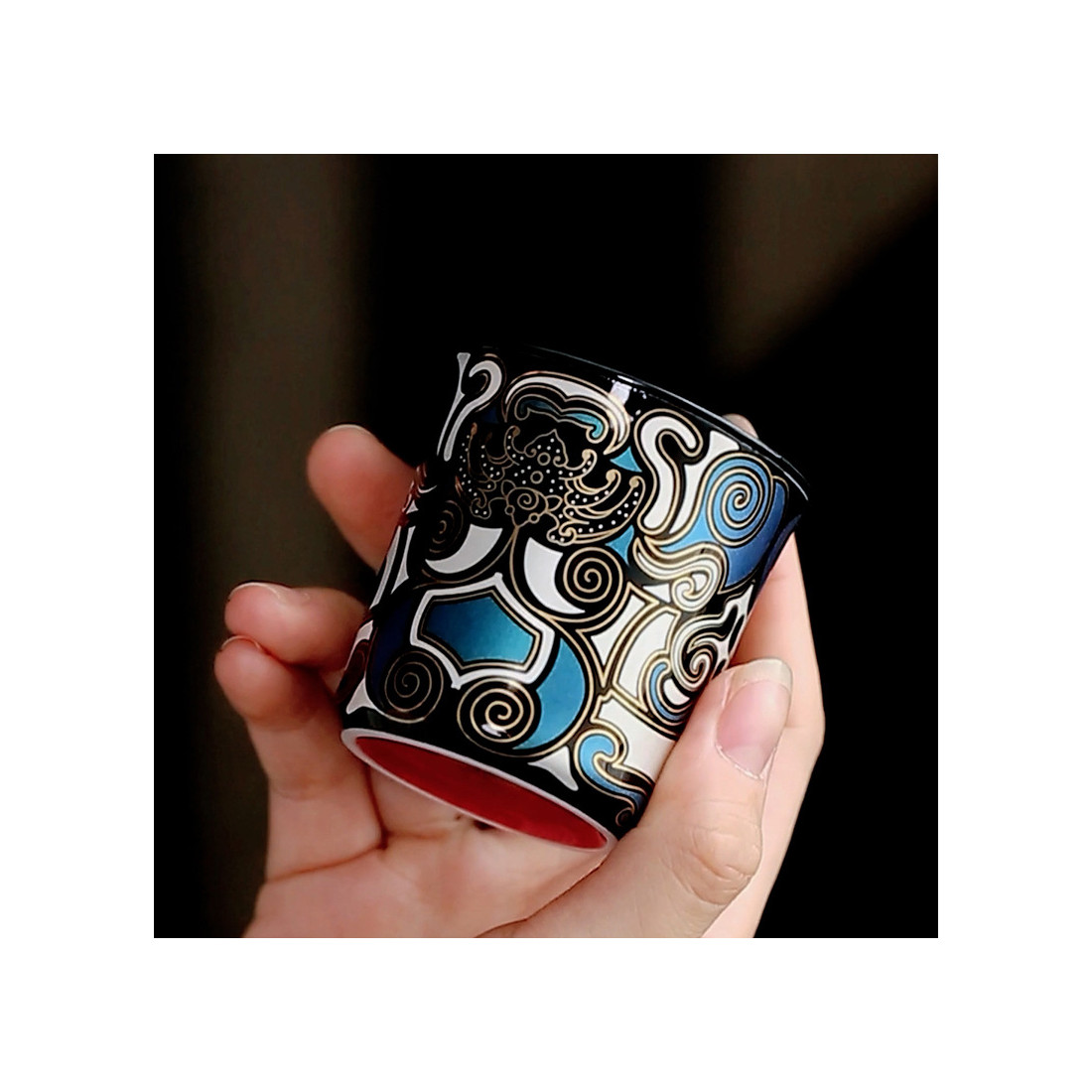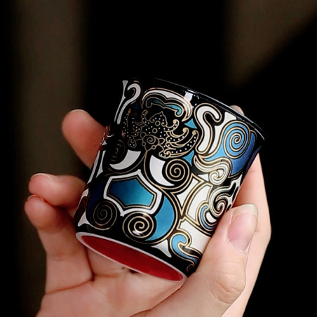 Чаша виконана у стилі "переплетення золота та срібла 金银错 з покриттям емаллю", що можна порівняти з відомою перегородчастою емаллю. Ця техніка, швидше за все, була запозичена хвилями від персів і європейців і остаточно закріпилася в Китаї на початку XVIII століття. Звичайно, в даному виробі використано сріблення та золочення, а не дорогоцінні метали.