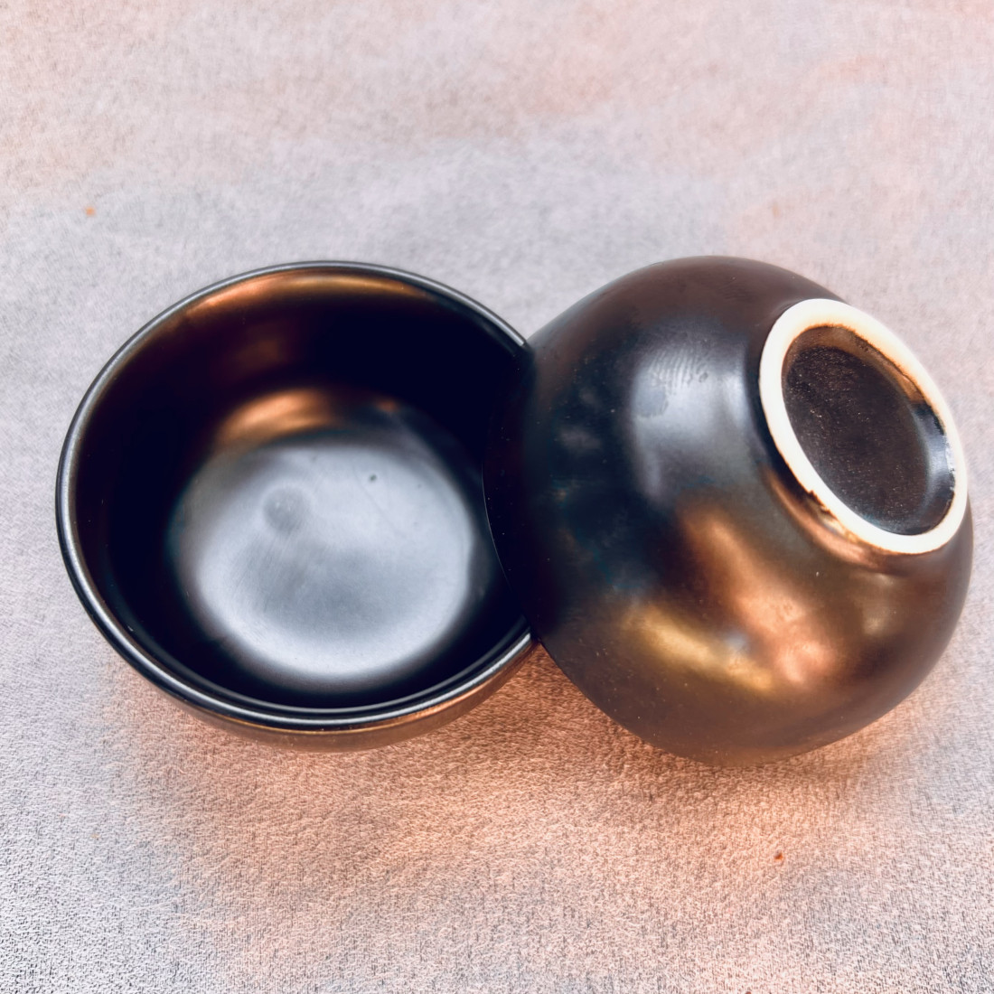 Чаша вкрита чорною глазур'ю.Корисний об'єм – 25 мл, повний – 40 мл.