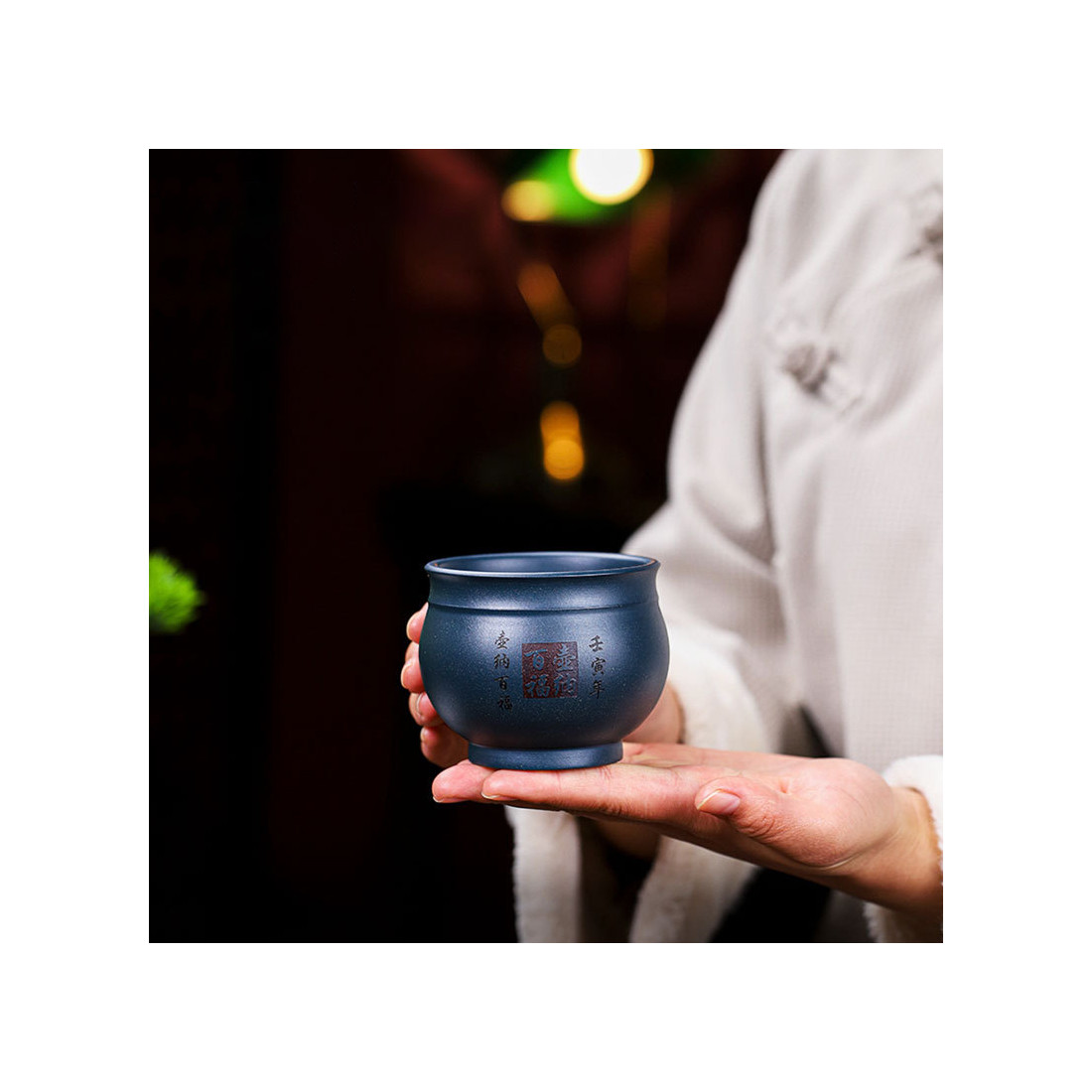 Товста масивна чаша із їсінської глини. Глина: синя глина тянь цін ні 天青泥.
