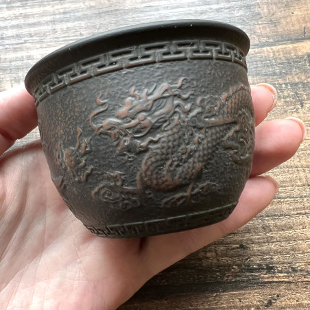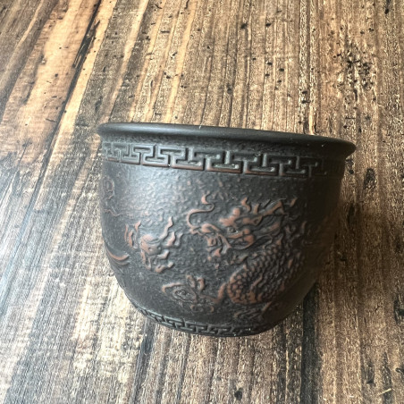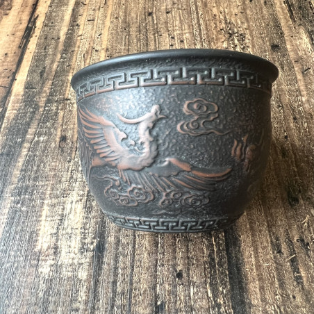 Глиняна чаша із зображенням дракона та фенікса, що борються за перлину. Цей образ є відображенням дуалізму інь та ян. Техніка виконання чаші нагадує зістарені бронзові судини.