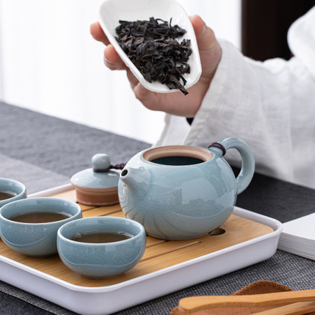 Колір грозової хмари означає, що відтінок глазурі, залежно від освітлення, сприймається від сірого до блакитного кольору. Поступово з використанням посуду тріщини на поверхні пофарбуються і стануть явнішими.