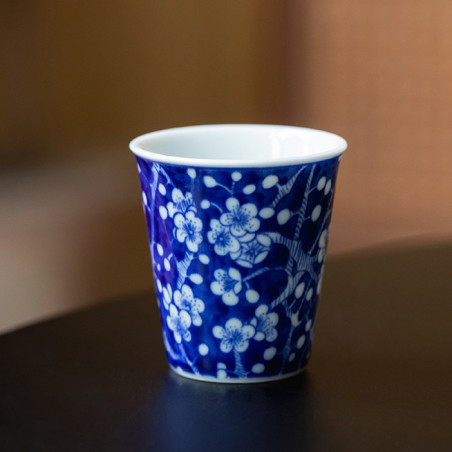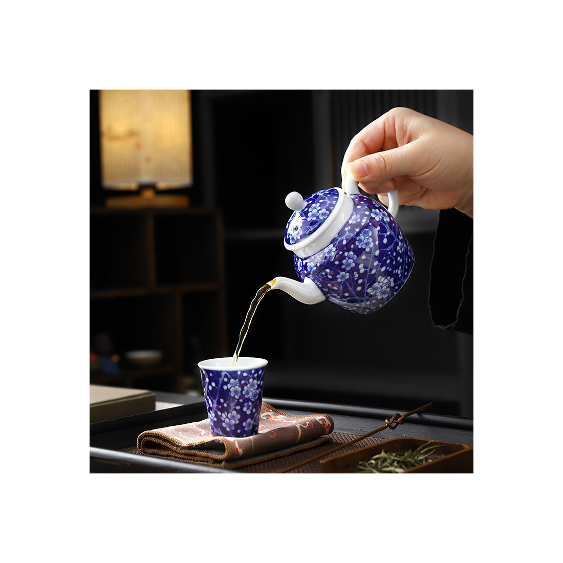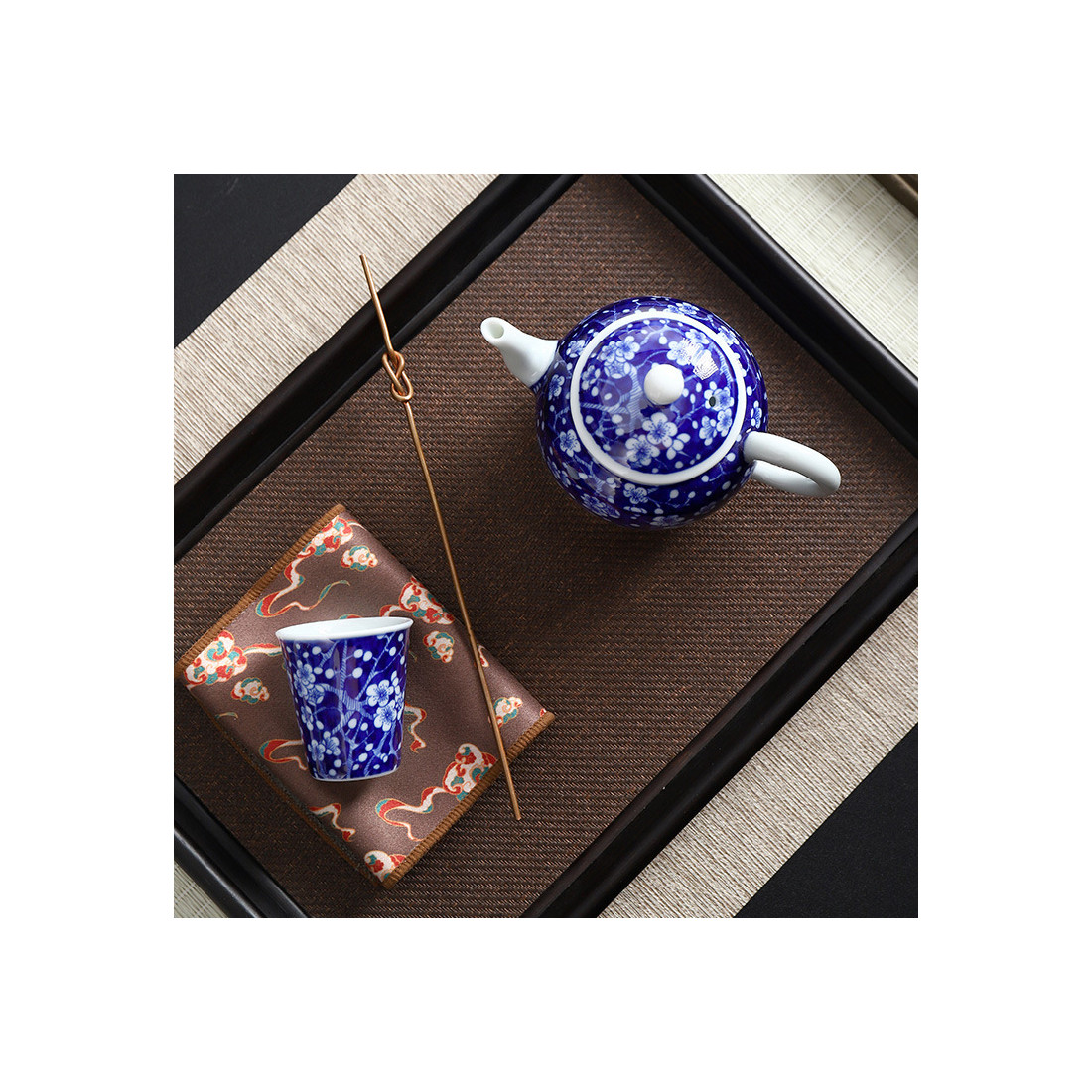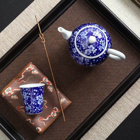 Порцеляновий чайник із зображенням снігової сливи в морозний день. Класичне поєднання білої порцеляни з темно-синім малюнком кобальтом.