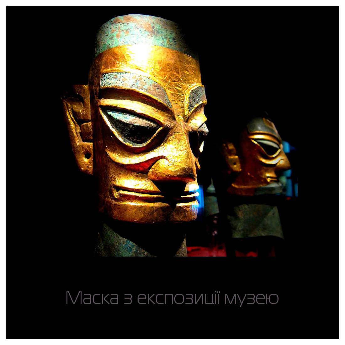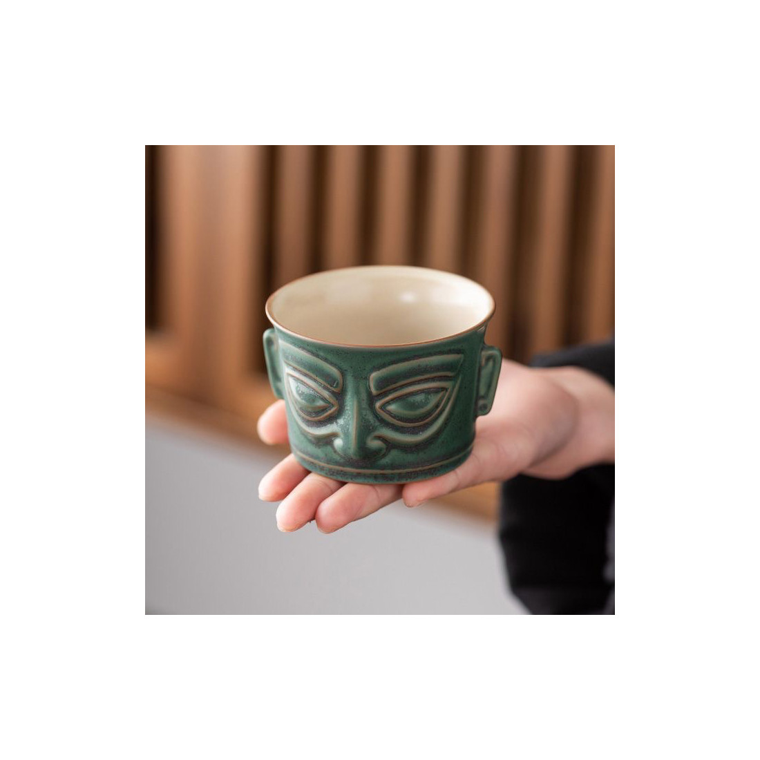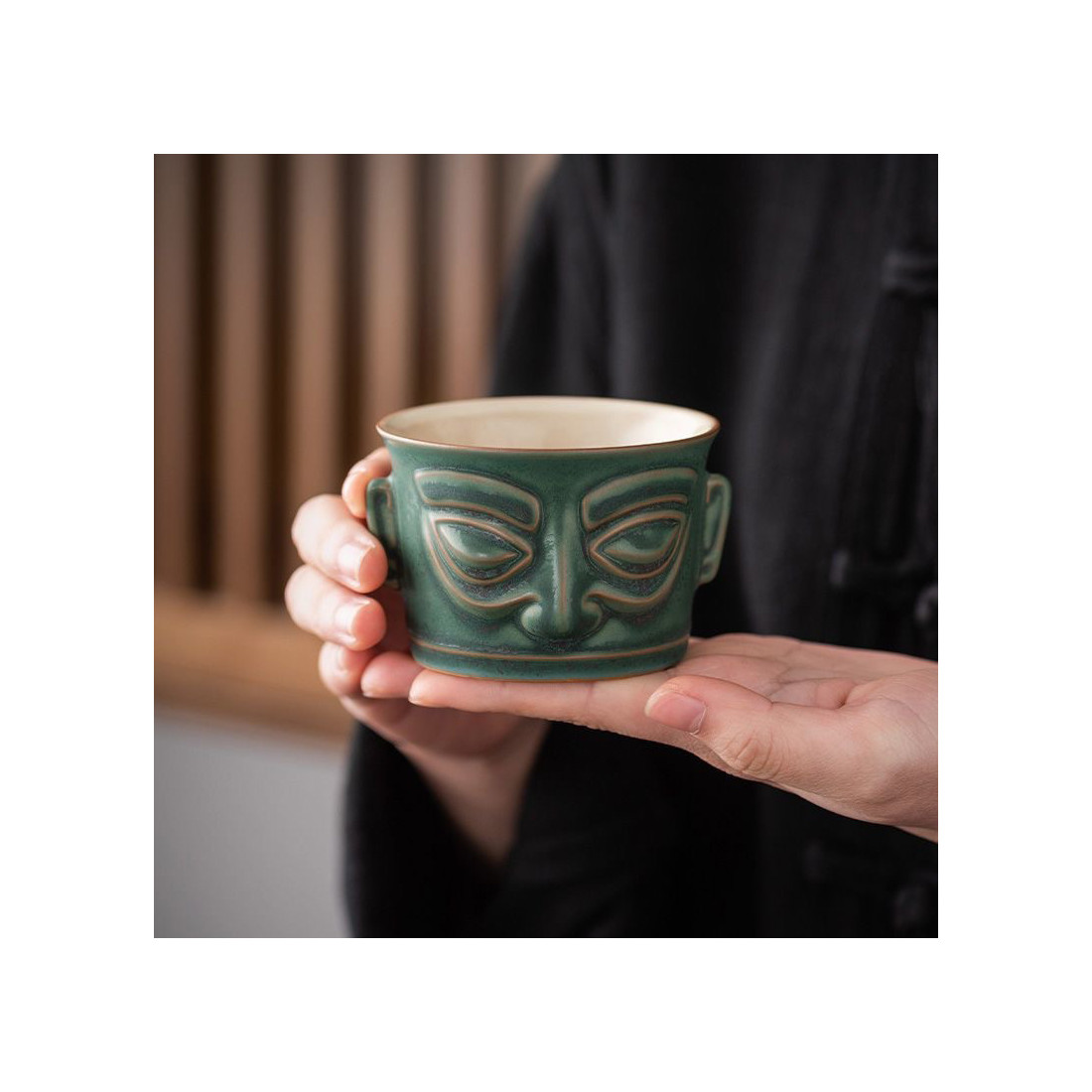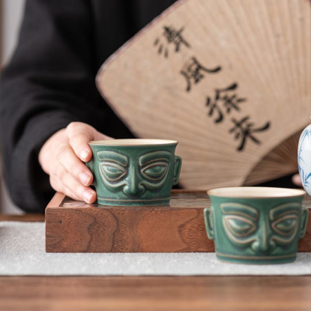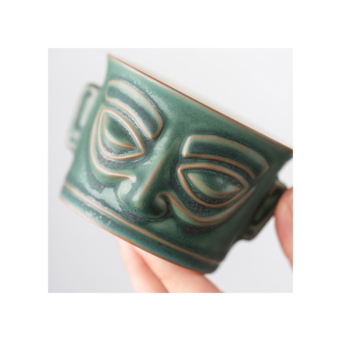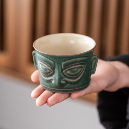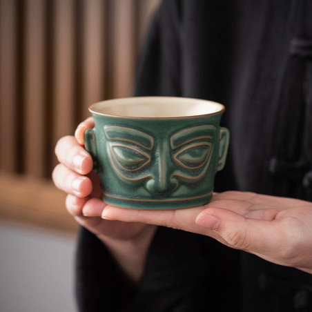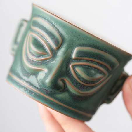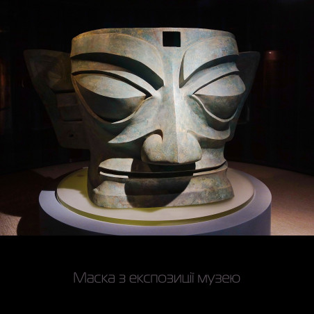 Чаша у стилі археологічної культури Китаю раннього бронзового віку Саньсіндуй 三星哲, яка зародилася на території древнього царства Шу 蜀 (сучасна провінція Сичуань). На початку ХХ ст. були розкопані золоті та бронзові маски у вигляді людиноподібних образів, датовані періодом 2000—800 років. до н. е.., які швидше за все були частиною релігійного культу та символом влади.