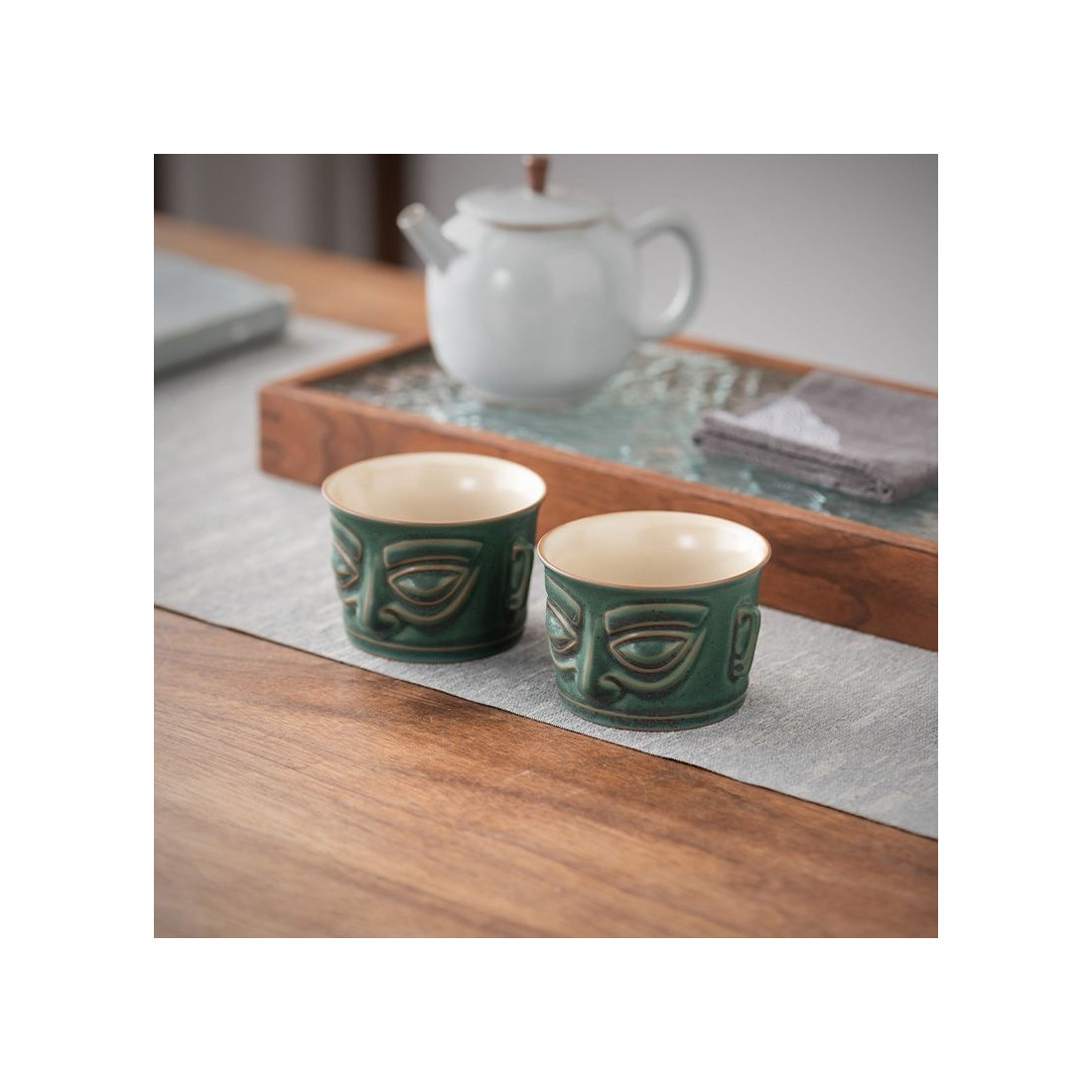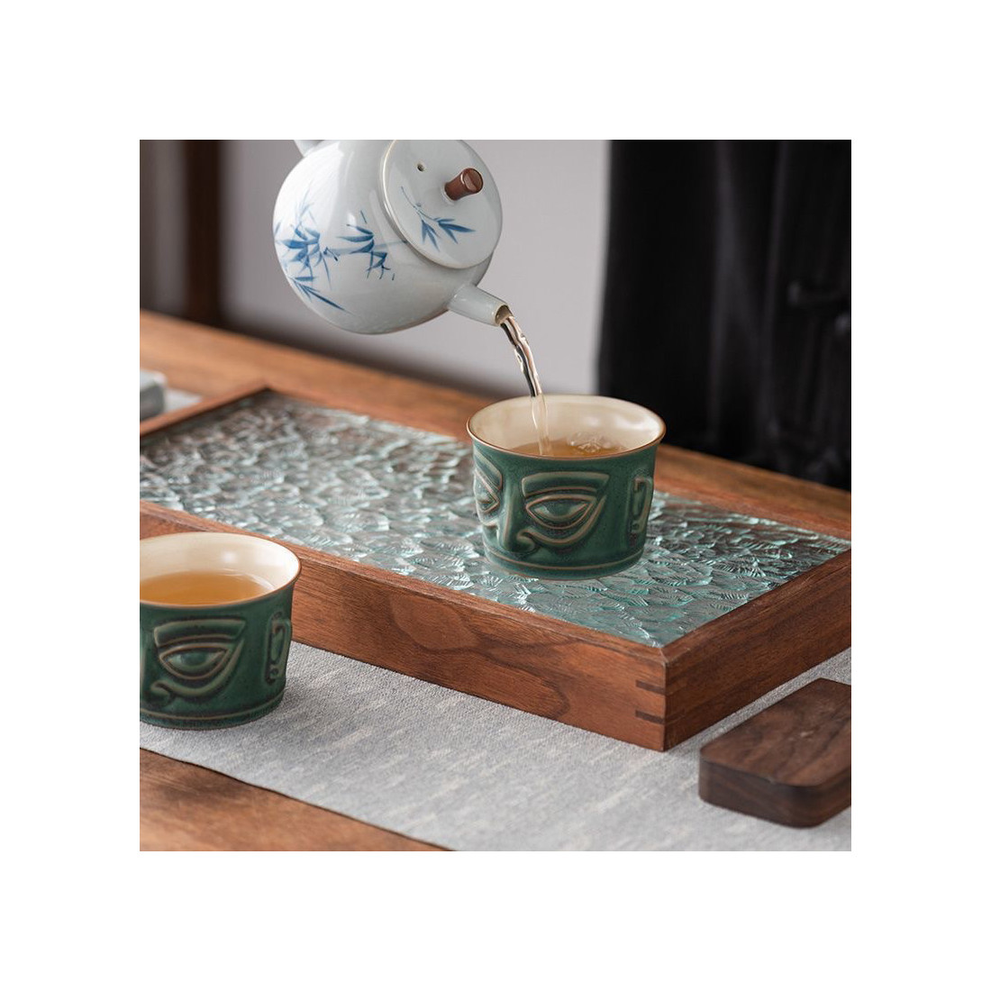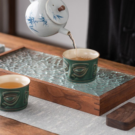 Кераміка в стилі яобянь, тобто остаточно колір і особливості глазурі формуються в печі, тому деякі предмети, зберігаючи зелений колір (відтінок якого також варіюється), можуть бути з більшою чи меншою кількістю крапок. Якщо вам важливо, як виглядає посуд — напишить в коментарях до замовлення, надішлемо фото.