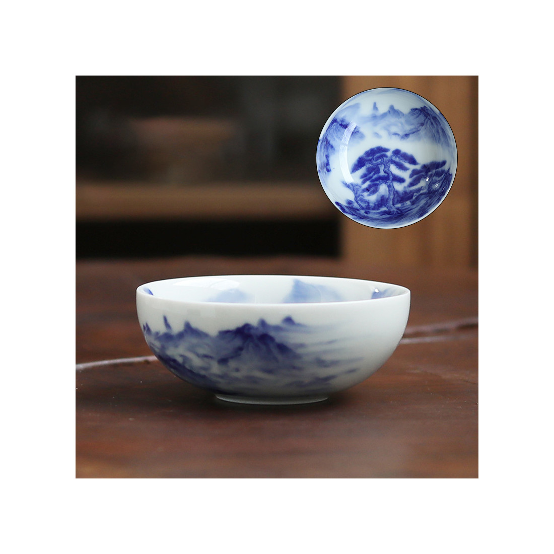 Одним із напрямків прикраси фарфорових чаш є зображення природного ландшафту. На цій чаші центром композиції виступила сосна на тлі гір. Малюнок розташовується по всій поверхні, як по зовнішньому борту, так і всередині. Малюнок може трохи відрізнятися від представленого на фото. Якщо вам важливо, як виглядає посуд — напишить в коментарях до замовлення, надішлемо фото.