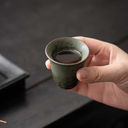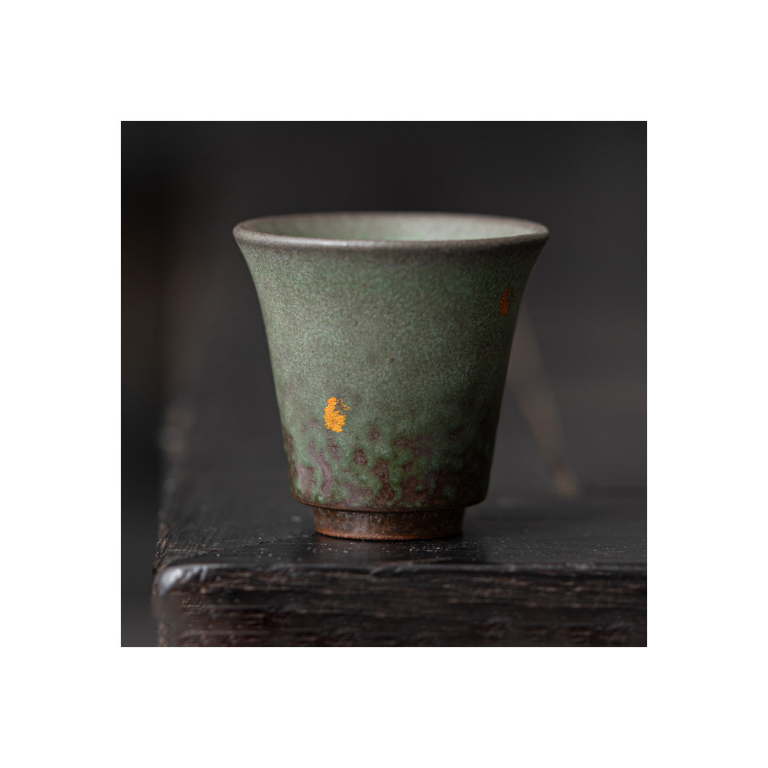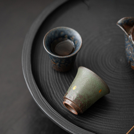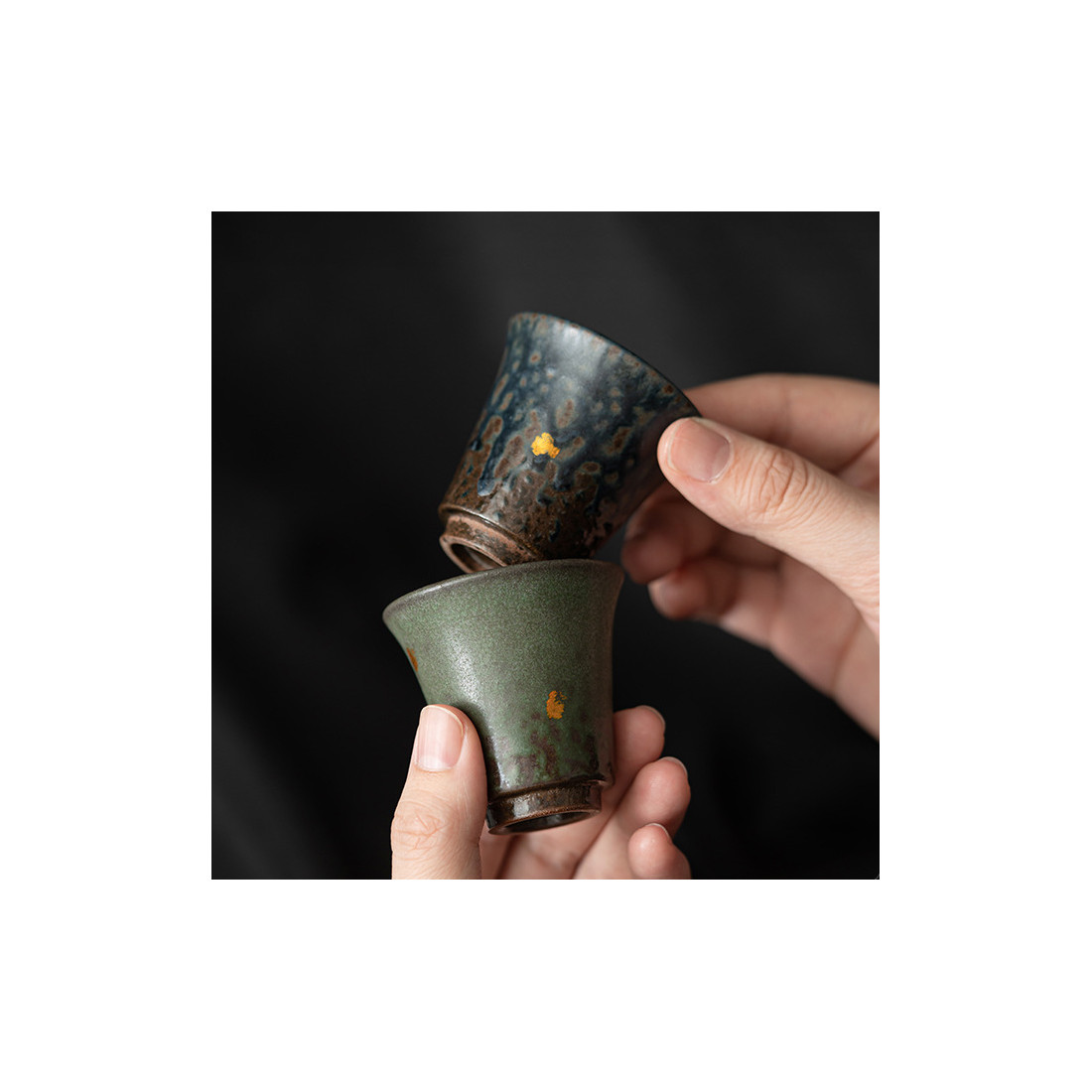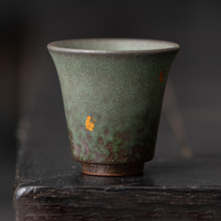Чаша з ефектарною глазур'ю яобянь та золотими акцентними крапками.