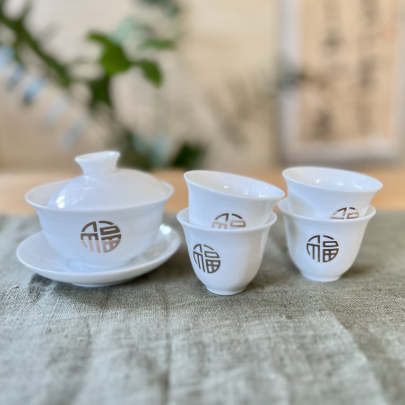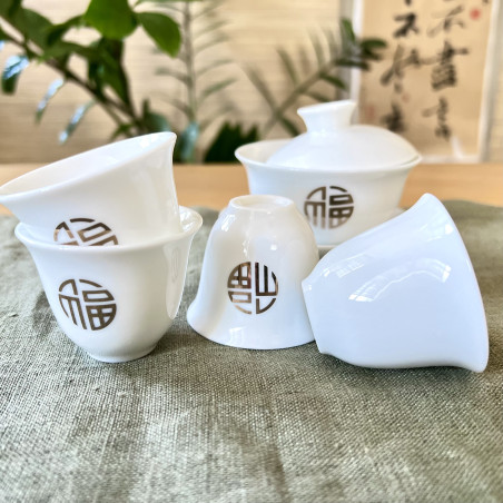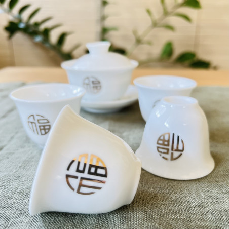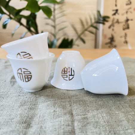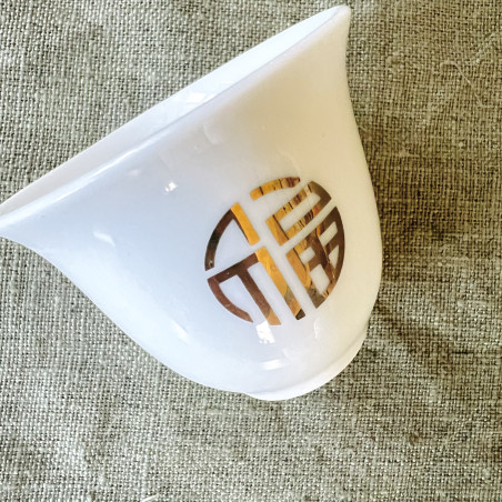 Чаша із зображенням ієрогліфа "Щастя". Виконана з тонкостінної порцеляни з нанесенням аплікації золотом.