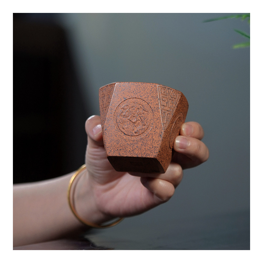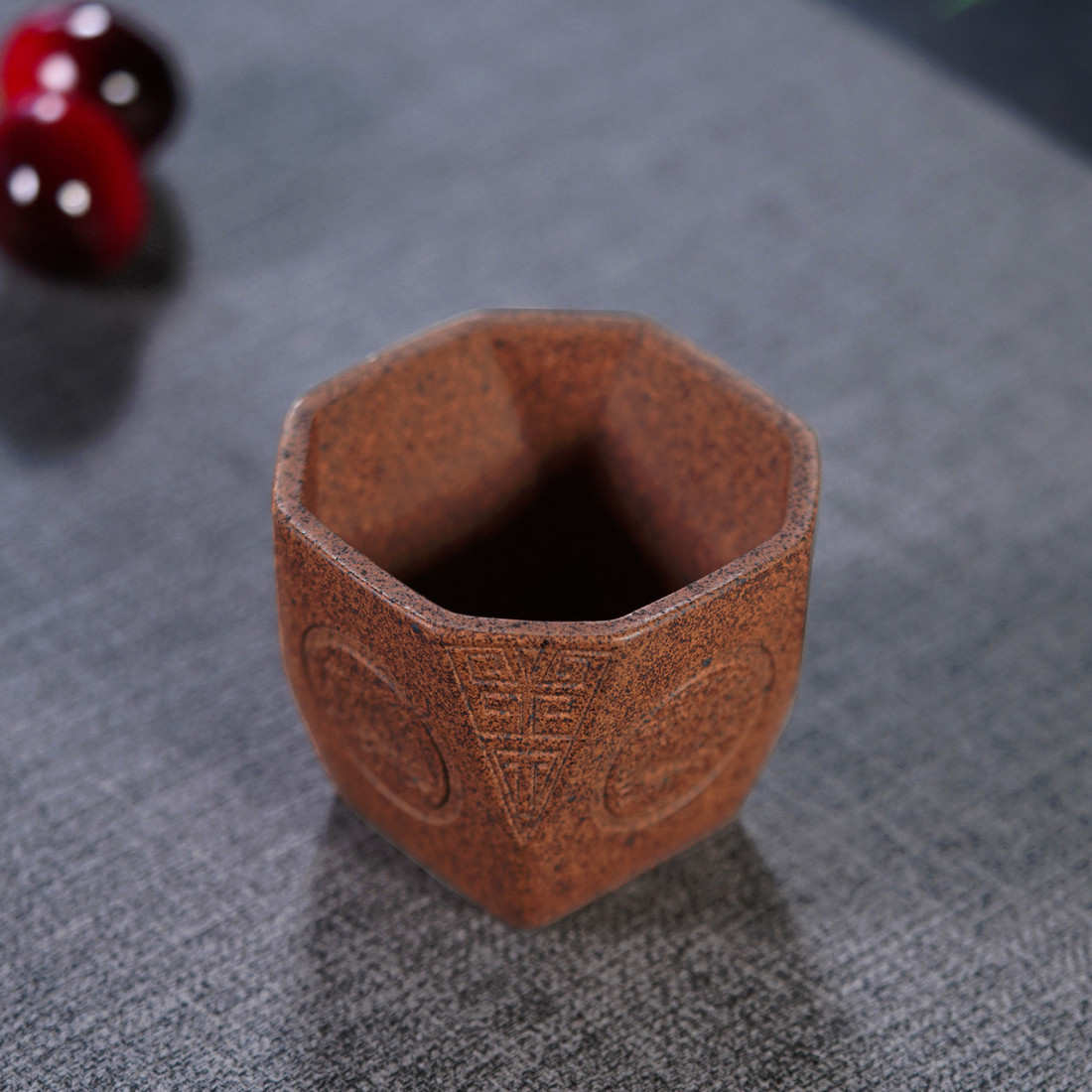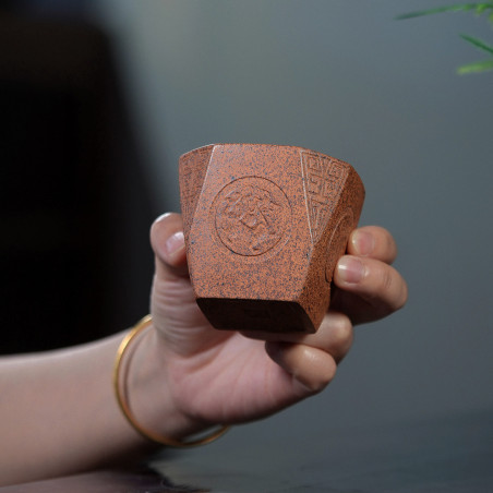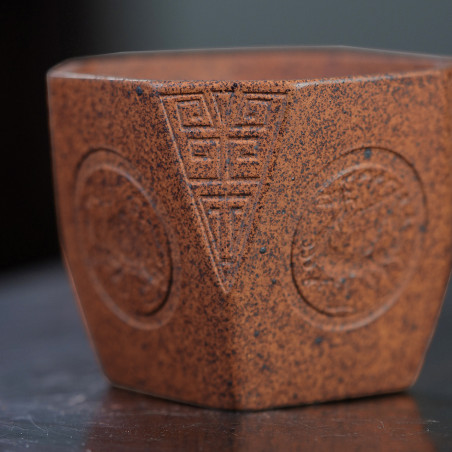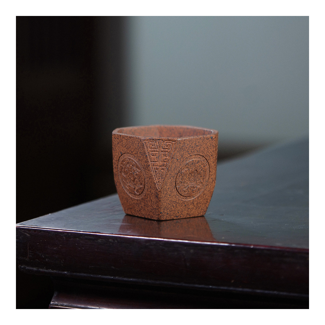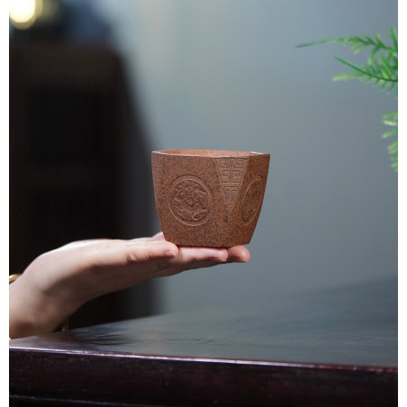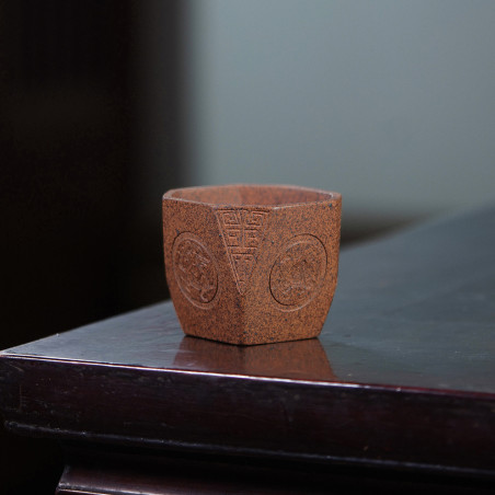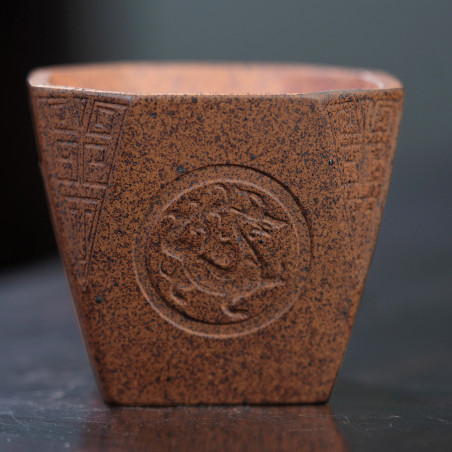 Товста масивна чаша із ісинської глини. Якісна глина з гарним помаранчевим відтінком: дуані 段泥 з великими вкрапленнями.