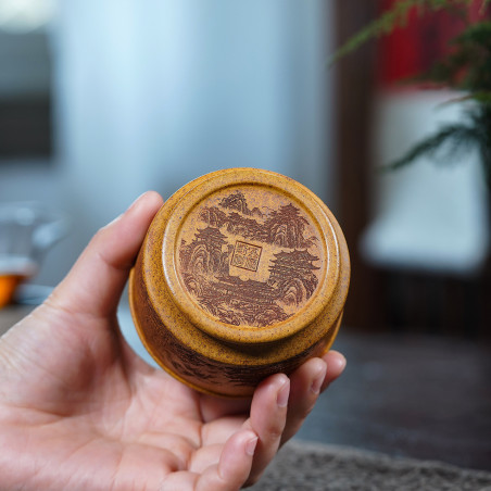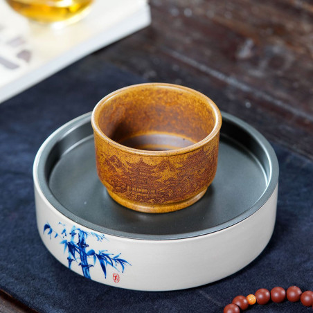 Чаша для тих, хто прагне побути на самоті, хоча б під час чаювання. З боків та на дні прикрашена зображенням гір та пагод. Напис на стінах: "Самітний весняний пейзаж". Ідея чаші відображає одночасно даоську філософію відлюдницького життя та єдності людини і природи.
