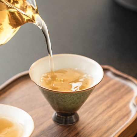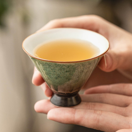 Чаша зліплена з каоліну в класичній формі крислатого конічного капелюха. Покрита агатовою глазур'ю яобянь. Ручне формування та високотемпературний випал.