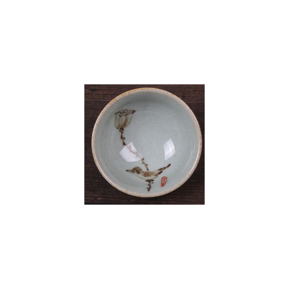 Сіра чаша з малюнком «Пташка на корені лотоса»