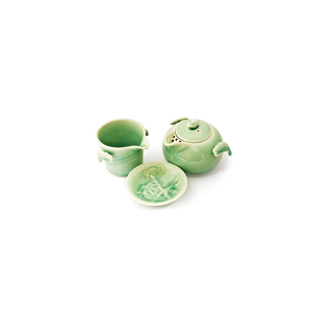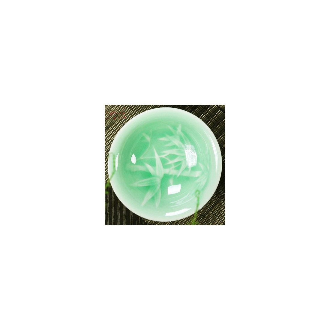Порцеляна покрита блідо-зеленою, майже бірюзовою, глазур'ю. Це один із різновидів селадону — лунцюаньський випал. Колір посуду спокійний та глибокий, що підкреслює зелений відтінок чайного настою.