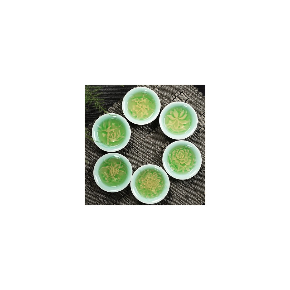 Чаші в наборі літньої форми широко відкриті. Діаметр - 8,5 см, висота - 2,5 см. Ви можете вибрати чашу із зображенням улюбленої вами благородної рослини Китаю.