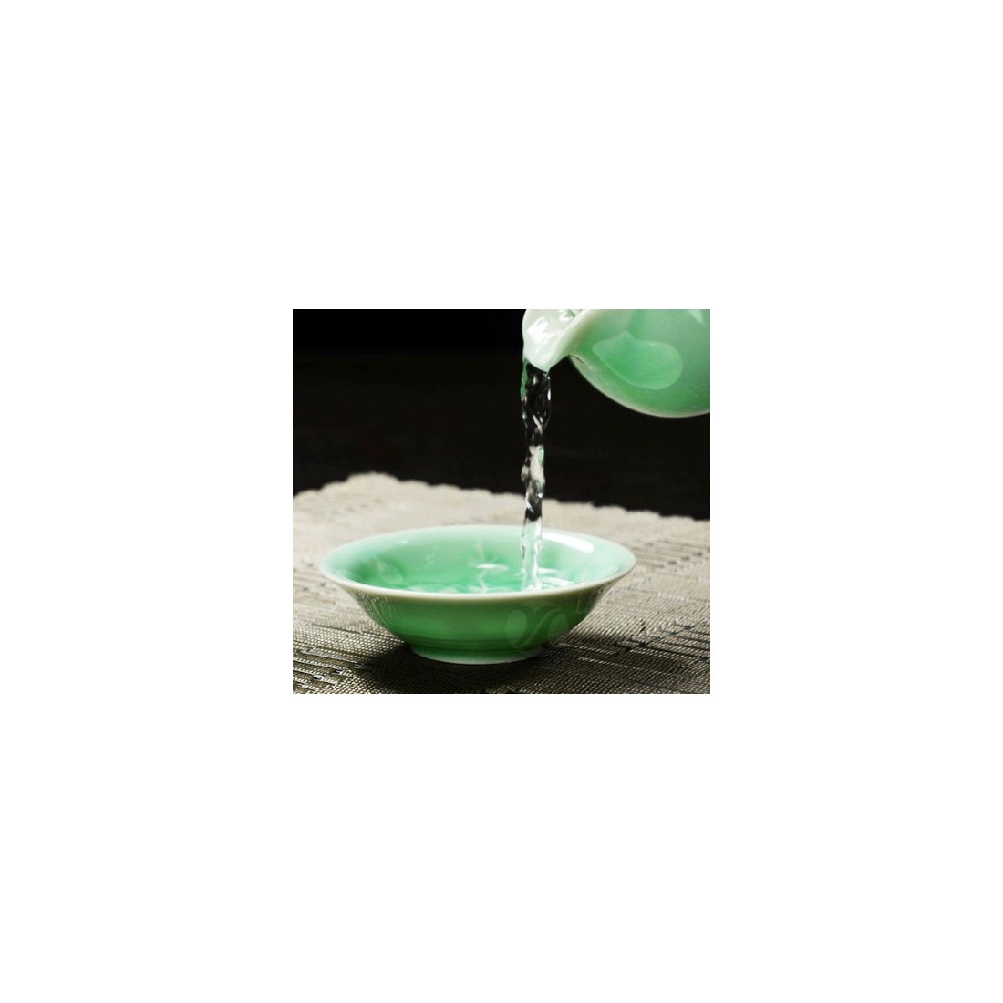 Порцеляна покрита блідо-зеленою, майже бірюзовою, глазур'ю. Це один із різновидів селадону — лунцюаньський випал. Колір посуду спокійний та глибокий, що підкреслює зелений відтінок чайного настою.