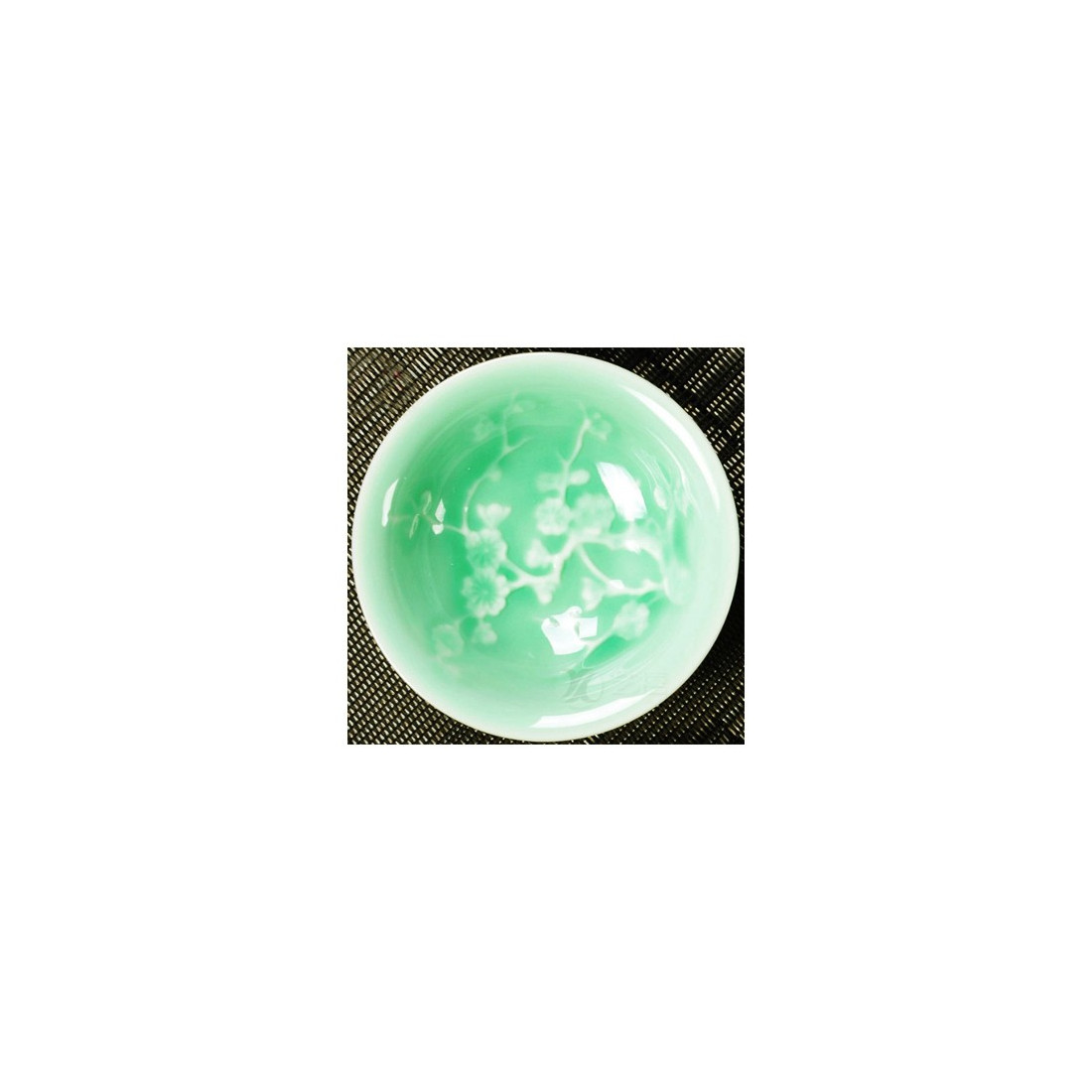 Порцеляна покрита блідо-зеленою, майже бірюзовою, глазур'ю. Це один із різновидів селадону — лунцюаньський випал. Колір посуду спокійний та глибокий, що підкреслює зелений відтінок чайного настою.
