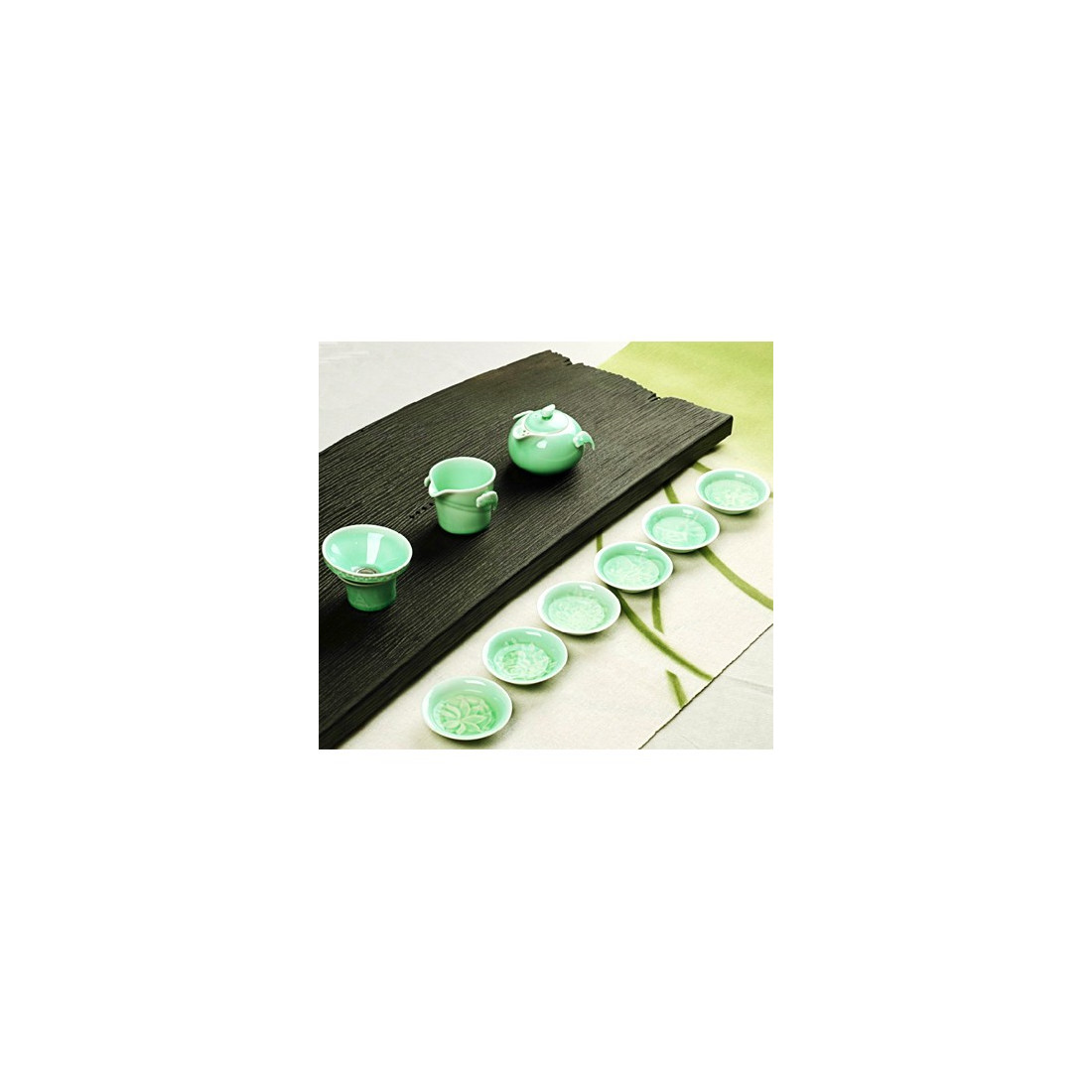 Порцеляна покрита блідо-зеленою, майже бірюзовою, глазур'ю. Це один із різновидів селадону — лунцюаньський випал. Колір посуду спокійний та глибокий, що підкреслює зелений відтінок чайного настою.