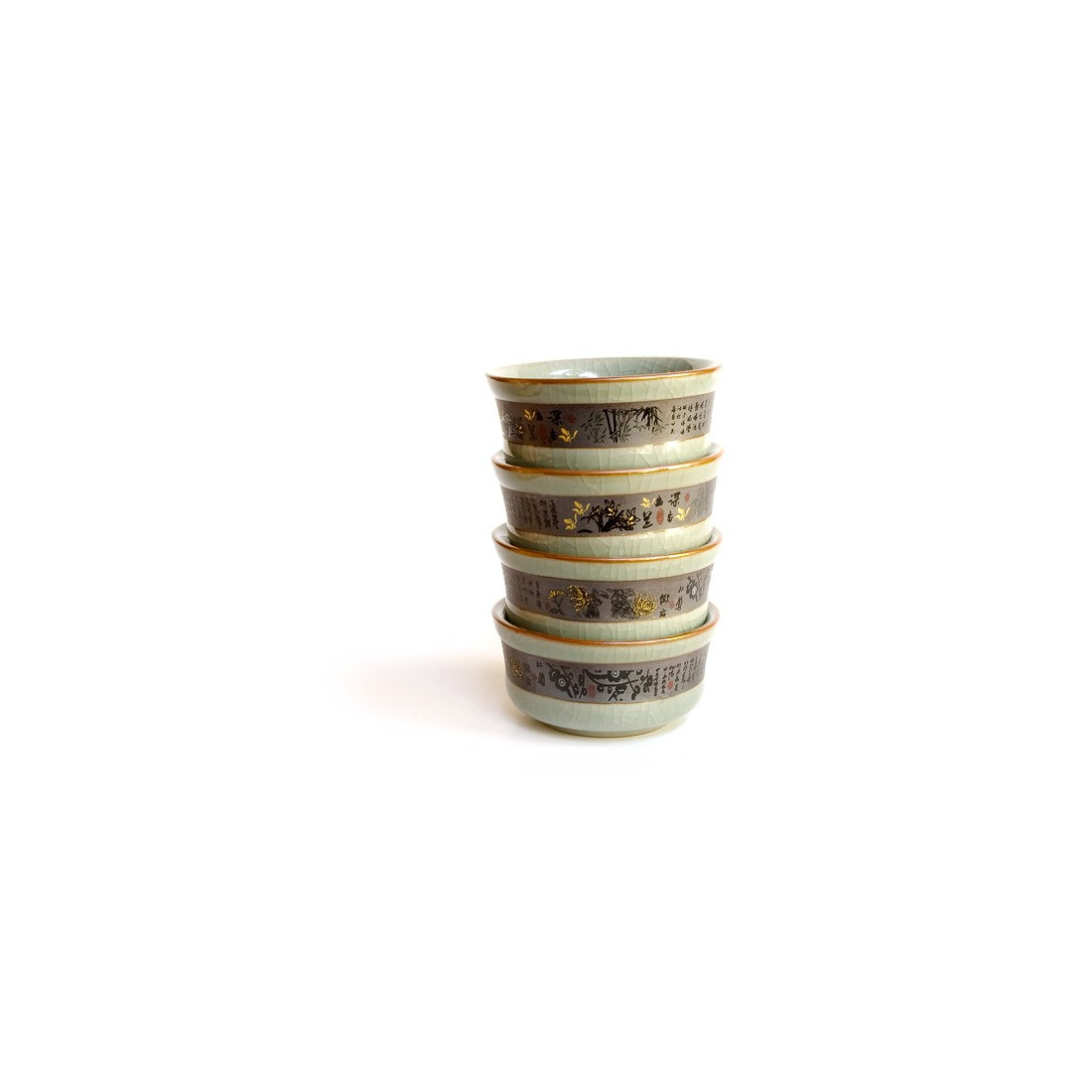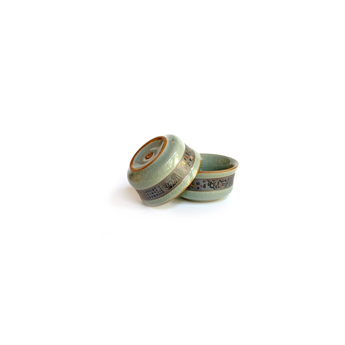 Селадон з орнаментом на керамічній вставці: чотири благородні рослини (хризантема, бамбук, квітуча слива, орхідея).