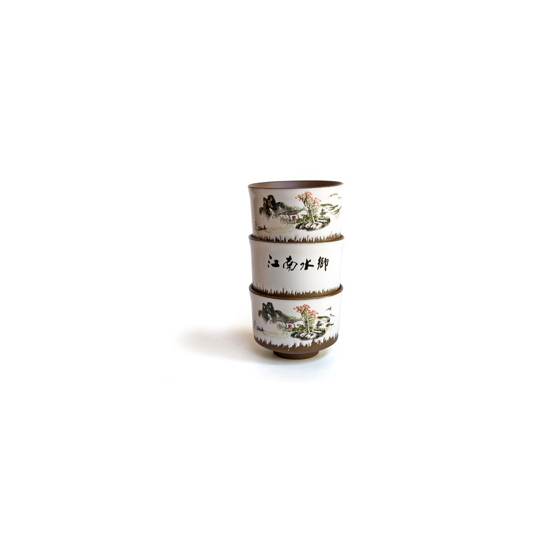 Чаша виготовлена з глини, на зовнішню поверхню нанесена порцеляна з класичним китайським пейзажем.