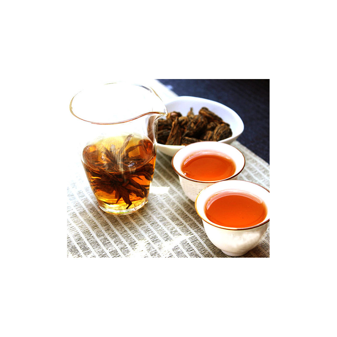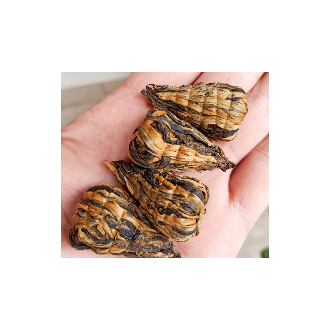Чай тільки здається декоративним, насправді це дуже смачний дяньхун. Насичений, але м'який, з солодкістю, з медовим ароматом та легкою ягідною кислинкою. Відмінно заварюється і проливами в гайвані, і одноразово в кухлі або термосі.