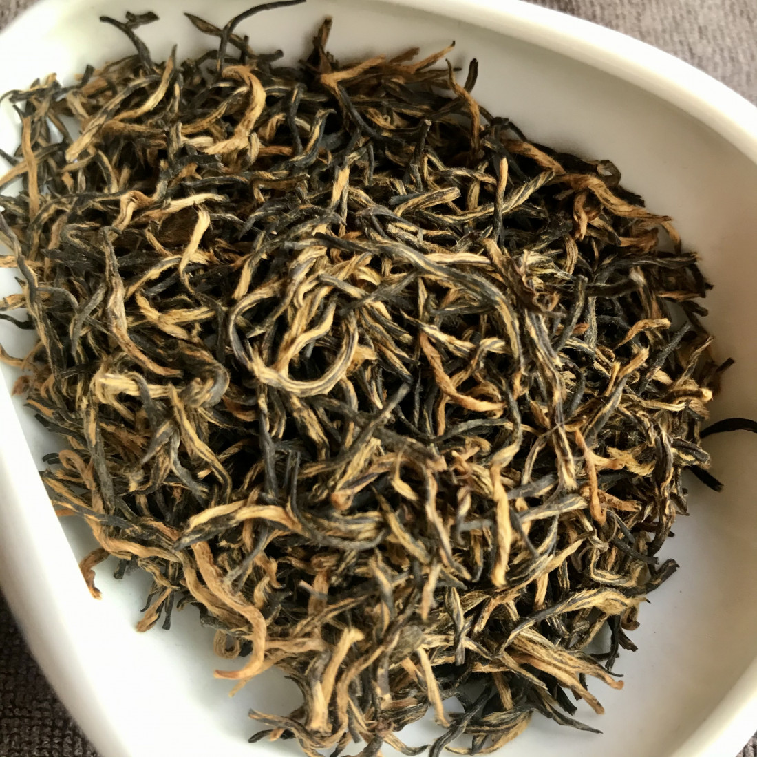 Чай із Тунмуґуань. Добірний чай на 90% складається з бруньок, зібраних у найкращий сезон – Цінмін. У ньому виразно відчувається аромат скоринки житнього хліба з нотами паленого цукру. У смаку – гречаний мед. Чай соковитий, цупкий, дуже солодкий.