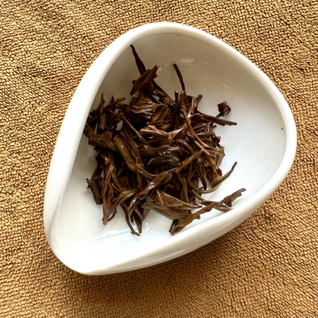 Чай лише частково складається з бруньок, основна частина – з листя. У сухому листі легкий аромат житніх скоринок, при заварюванні розкривається квітковий аромат. Завдяки наявності листя настій насичений, під кінець заварювання відчувається терпкість.