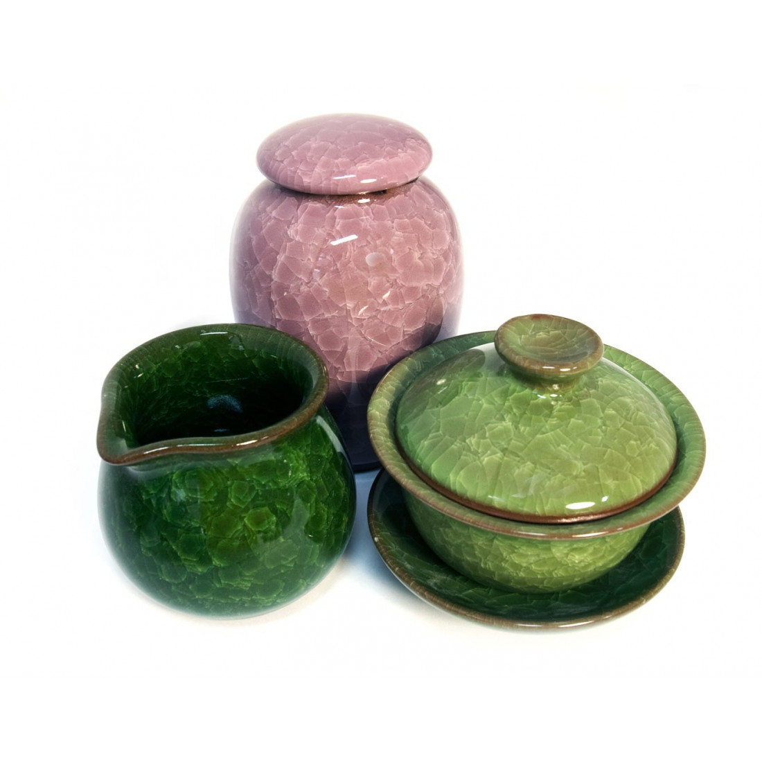Серія кераміки «колотий лід» - сучасний посуд для чаювання. Візуальний ефект «колотого льоду» виникає від використання особливої ефектарної глазурі, яка при випалюванні перетворюється на безліч дрібних пластинок, які виглядають як подрібнений лід, що застиг у прозорій воді. Глазур дає товщину і додаткову вагу посуду, роблячи його товстостінним, зате менш теплопровідним. Вона не обпалює руки, вода повільніше остигає. У цьому посуді найкраще розкриваються пуери, гуандунські улуни («Самотні кущі з гір Фенікса»), улуни з гори УІ (типу «Да Хун Пао»), червоні чаї, а також білі. Насправді товстостінне начиння протипоказане лише зеленому і жовтому чаю, тому що їм зайве тепло при заварюванні шкодить.