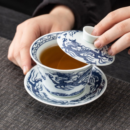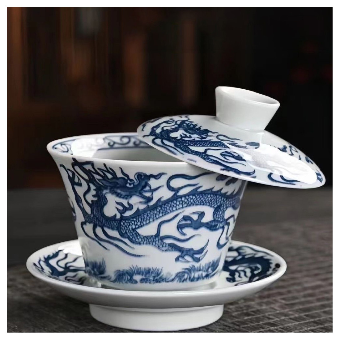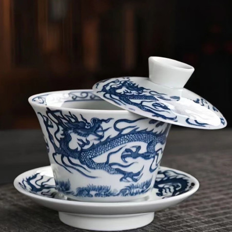 Порцелянова ґайвань «Дракони» із кришкою, що зависає