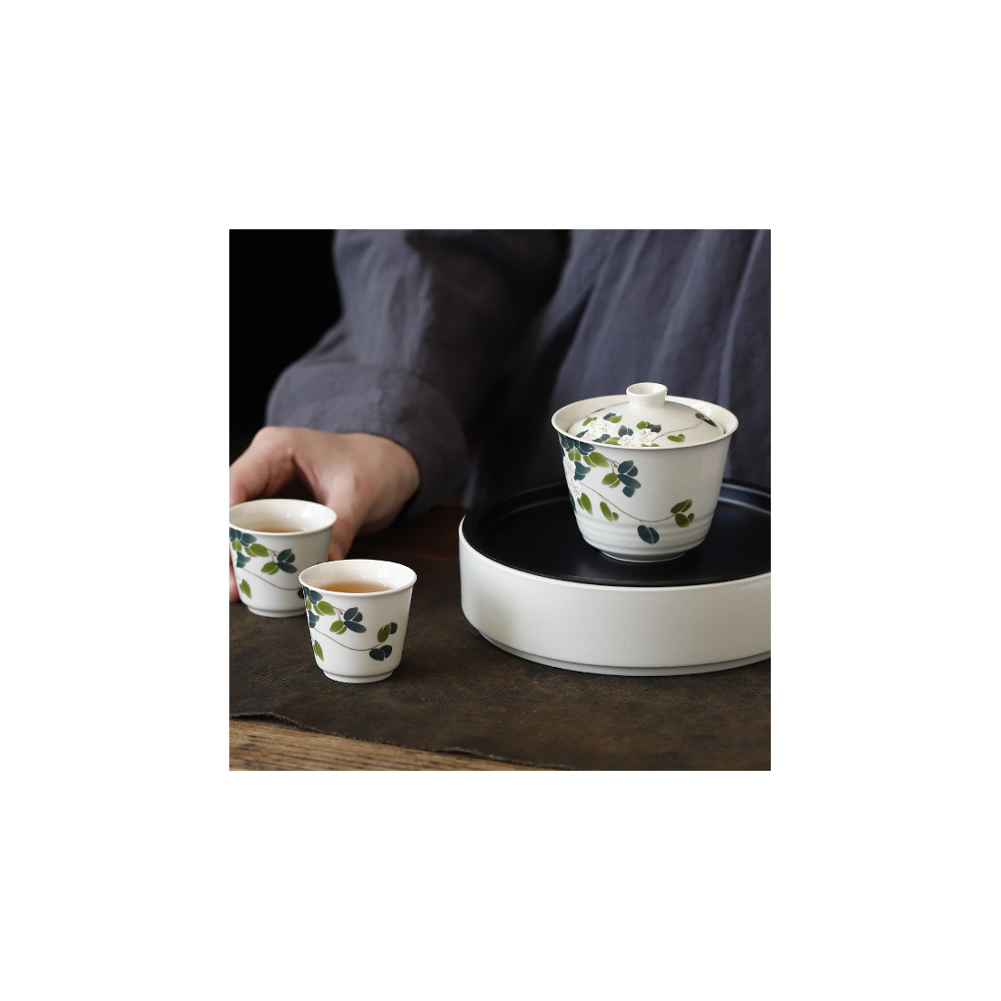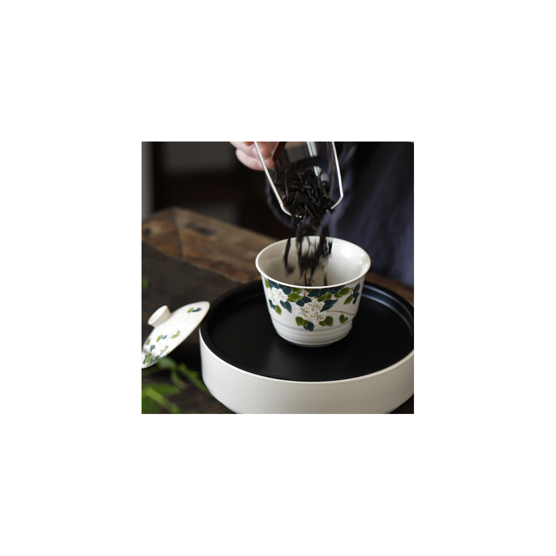 Зображення чайних квітів рідко зустрічається в оформленні посуду, хоча, безперечно, доречно на чайному столі.