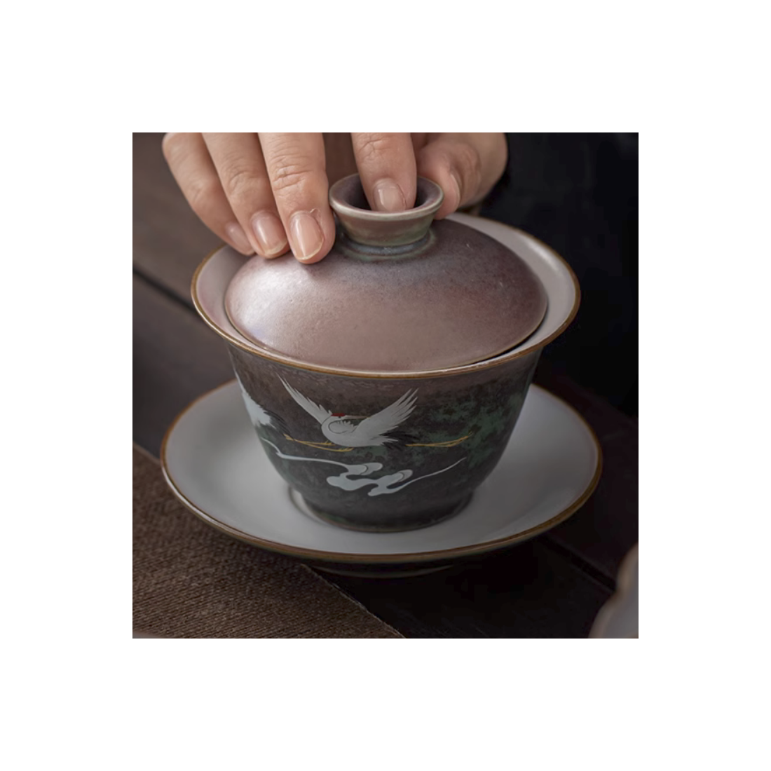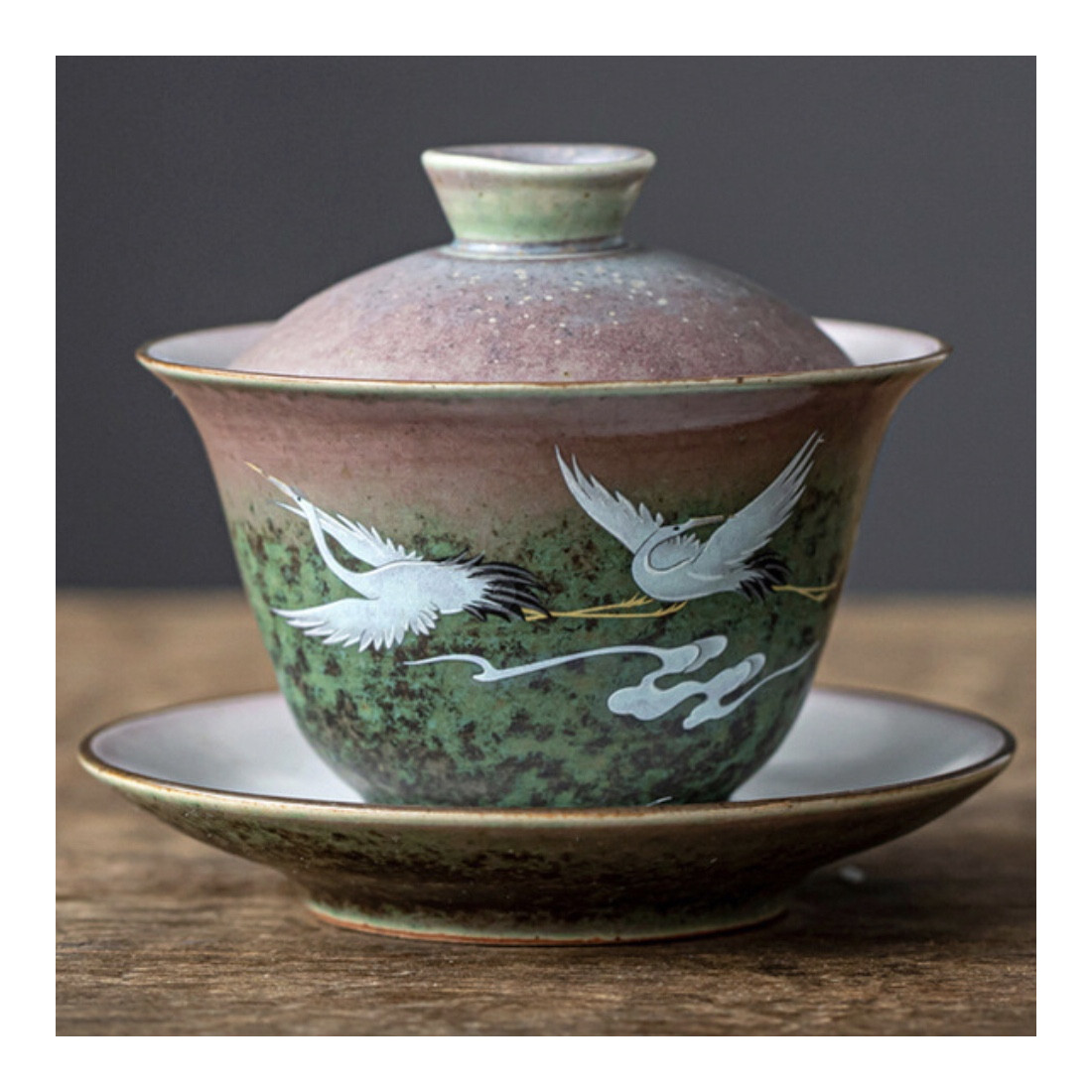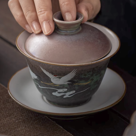 Керамічна гайвань із зображенням журавлів.