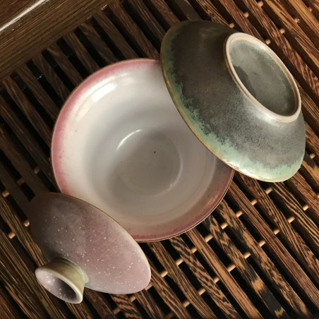Так як покриття гайвані з ефектом яобянь, тобто у печі утворюється остаточний малюнок і колір глазурі, то всі гайвані трохи відрізняються за забарвленням, але зберігають малиновий, золотистий та зелений відтінок, показаний на фотографії. Малюнок — аплікація.