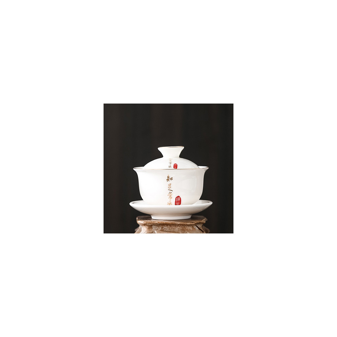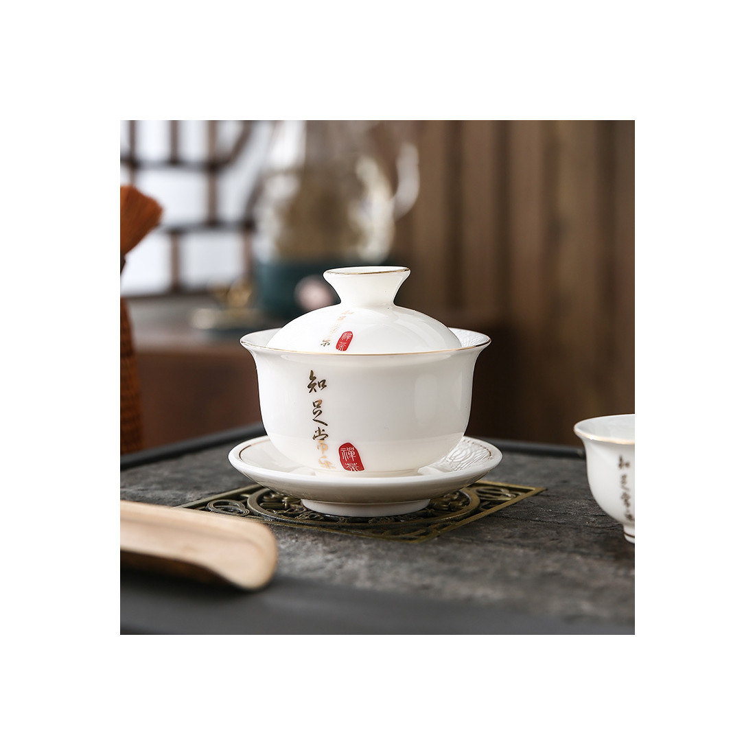 Гайвань "Цінуй те, що маєш, і завжди будеш щасливий" з фарфору кольору білого нефриту