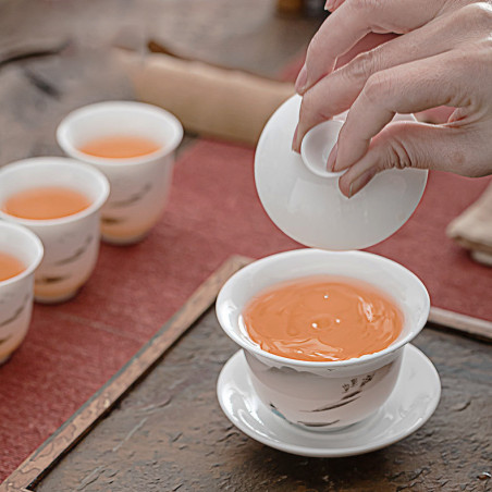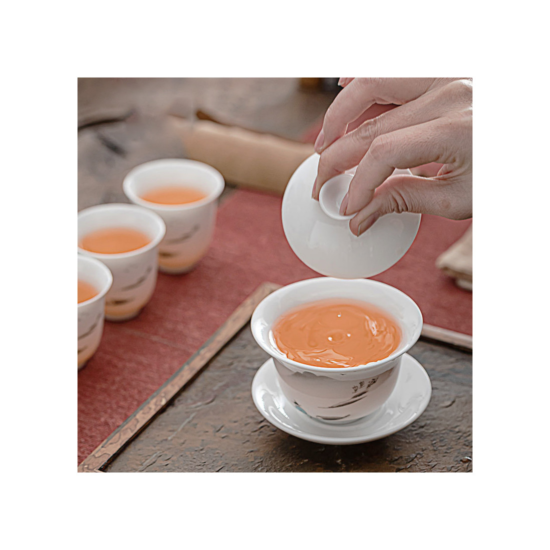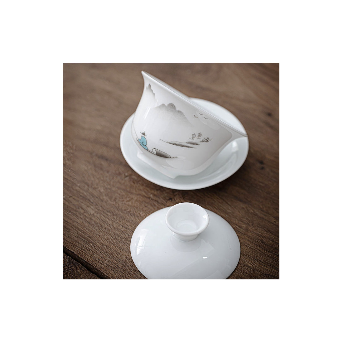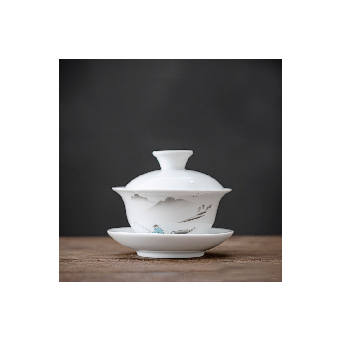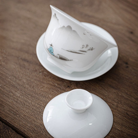 Фарфорова класична гайвань з малюнком у вигляді рибака. Виконана з тонкостінної порцеляни з нанесенням аплікації.