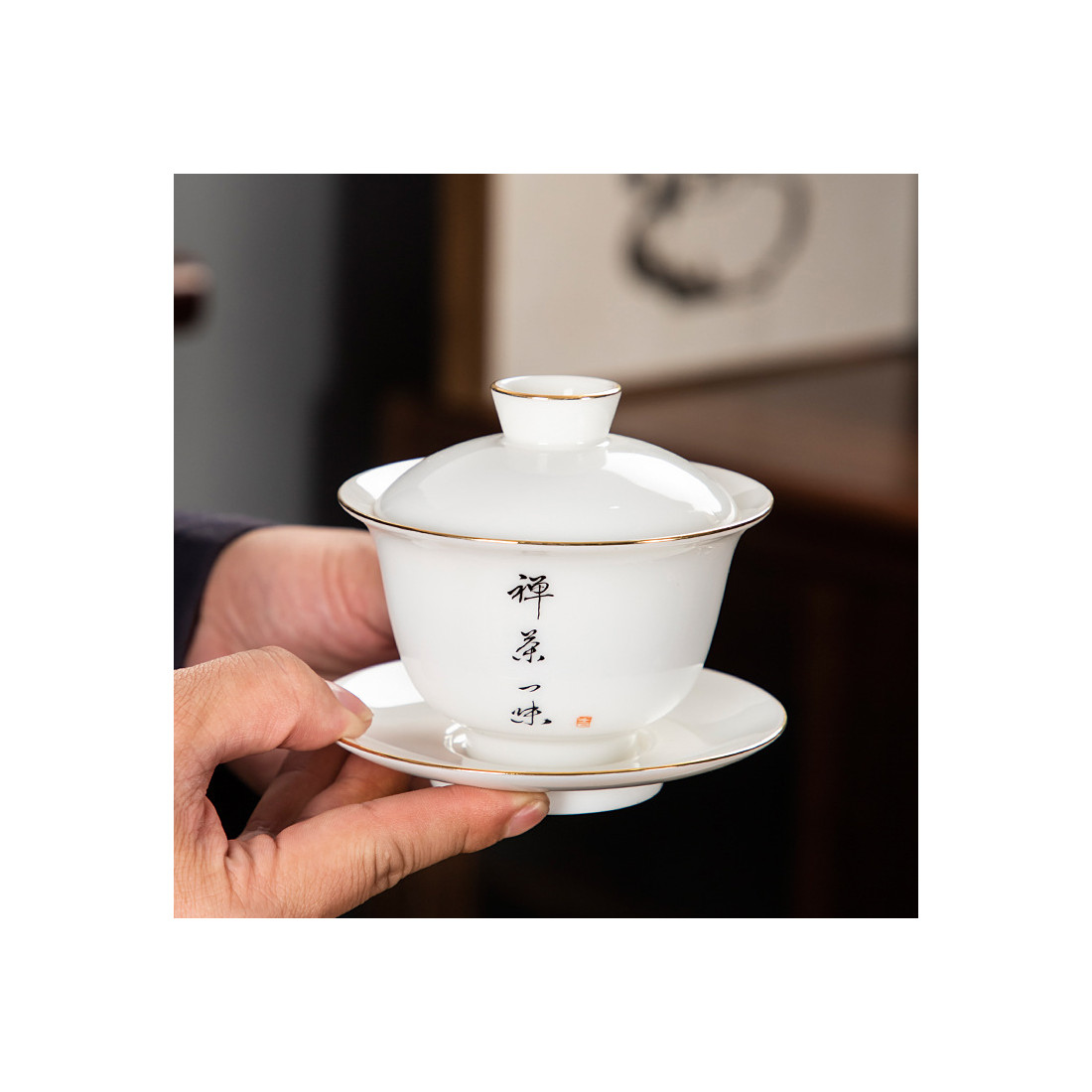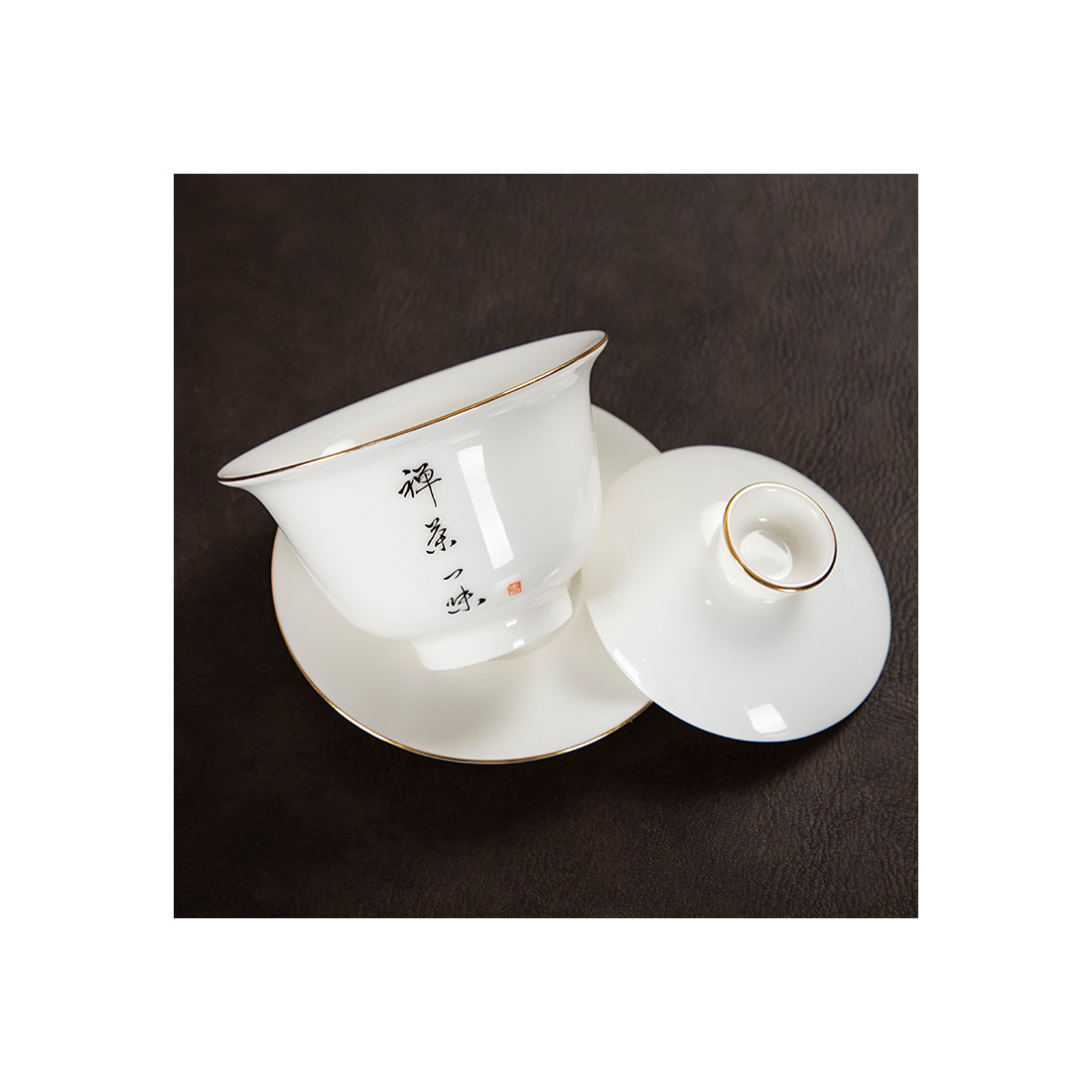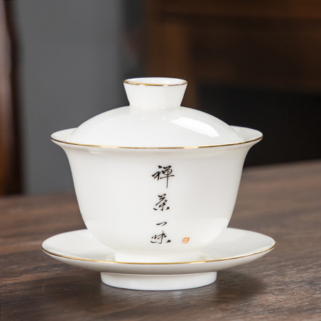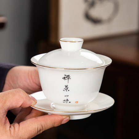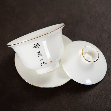 Гайвань "Чань та чай одного смаку" з фарфору кольору білого нефриту