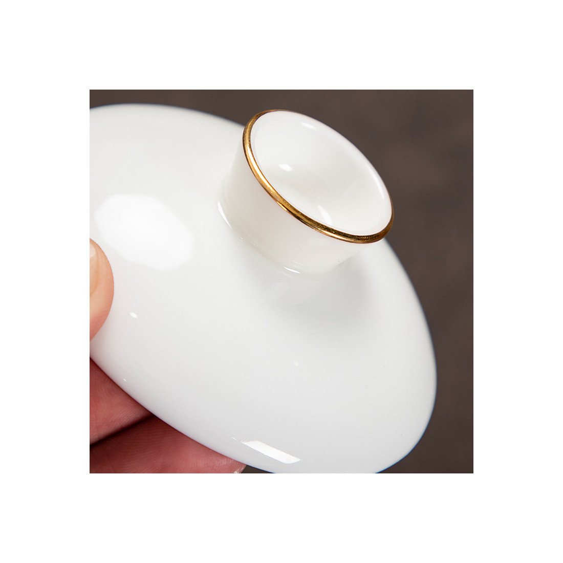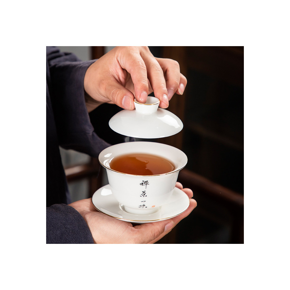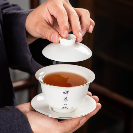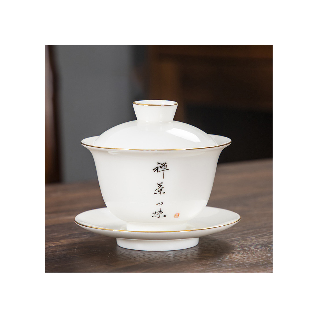 Гайвань "Чань та чай одного смаку" з фарфору кольору білого нефриту