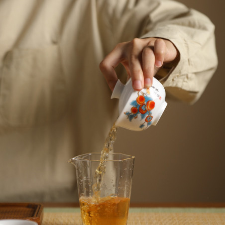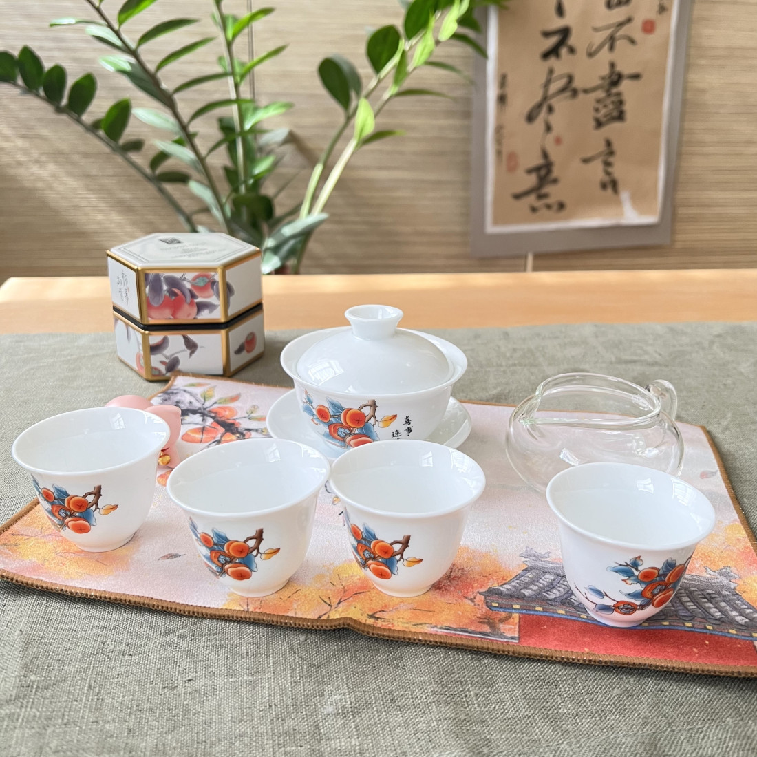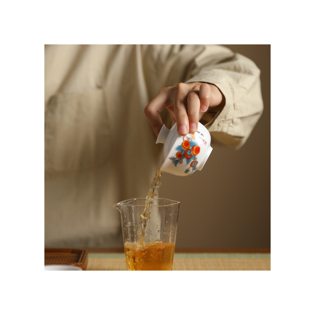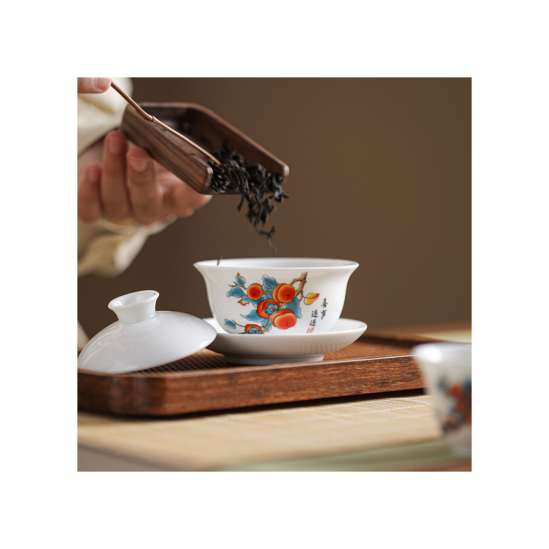 Гайвань із зображенням гілки хурми. Виконана з тонкостінної порцеляни з нанесенням аплікації.