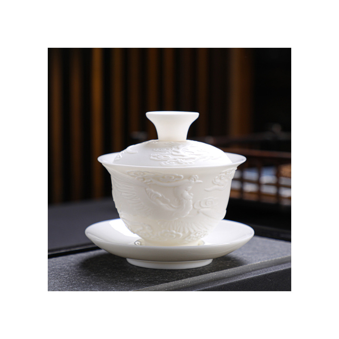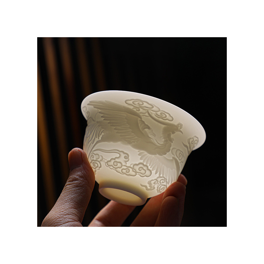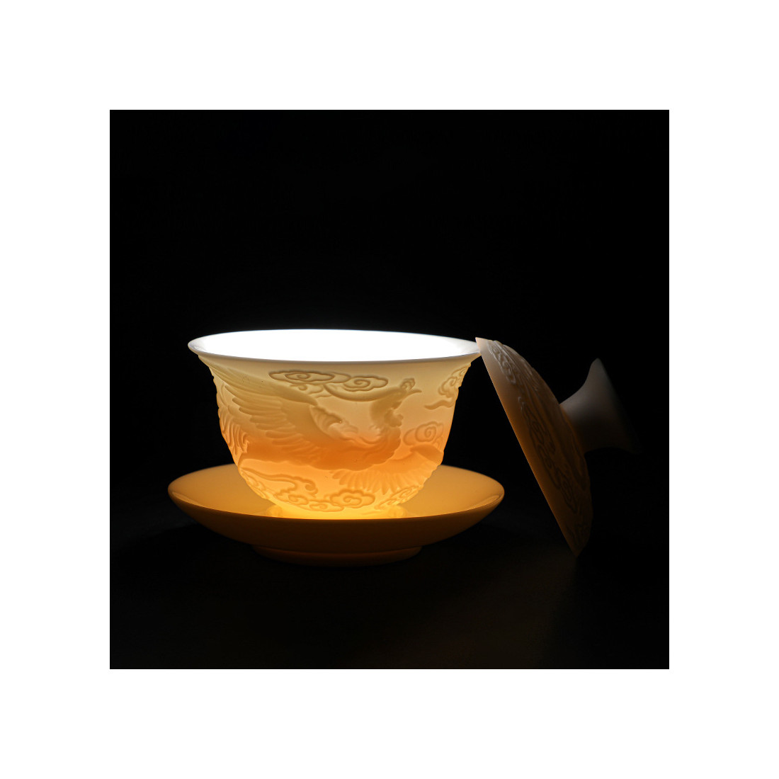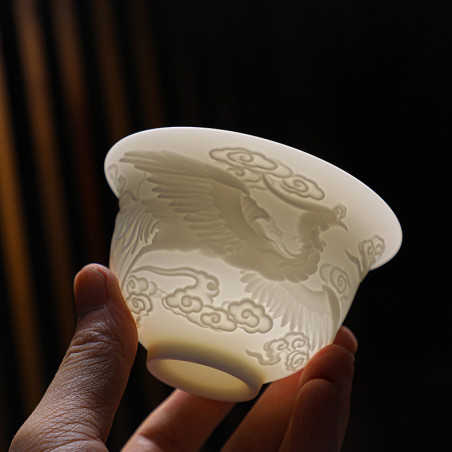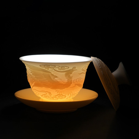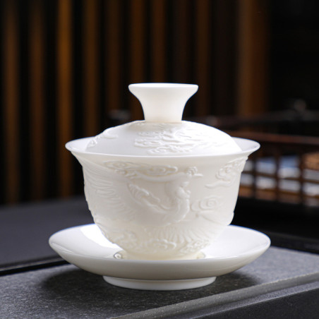Порцелянова ґайвань кольору білого нефриту "Фенікс"