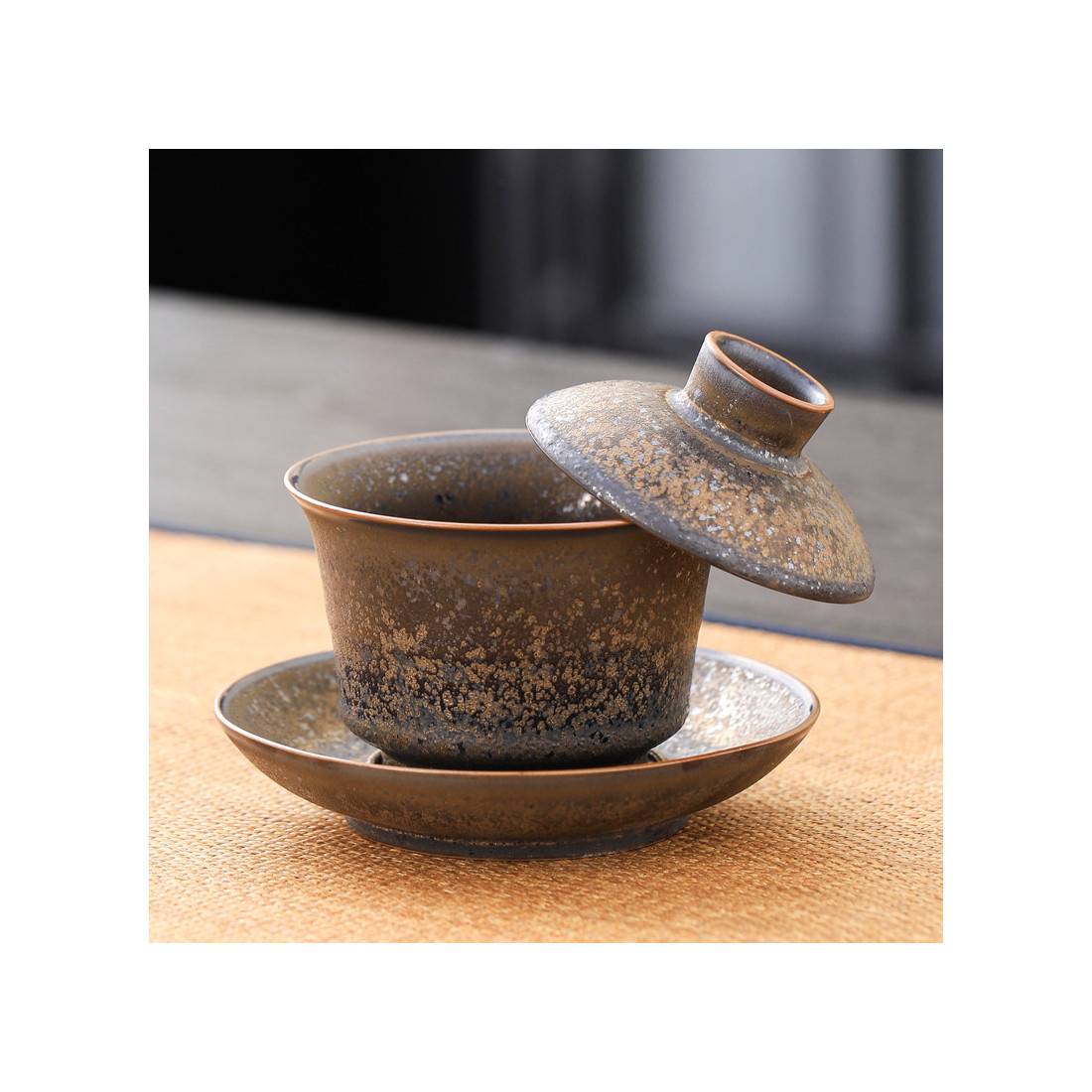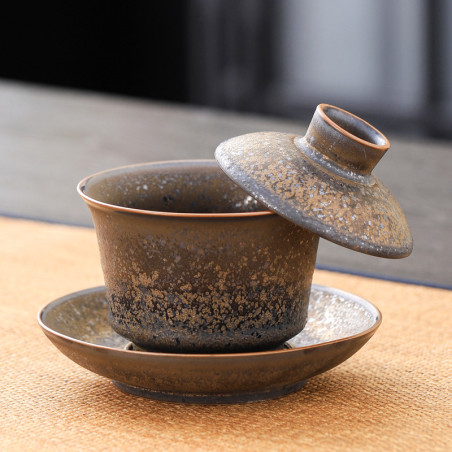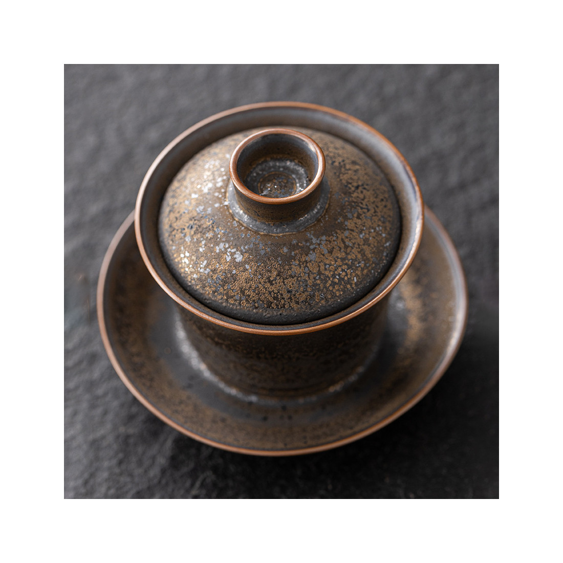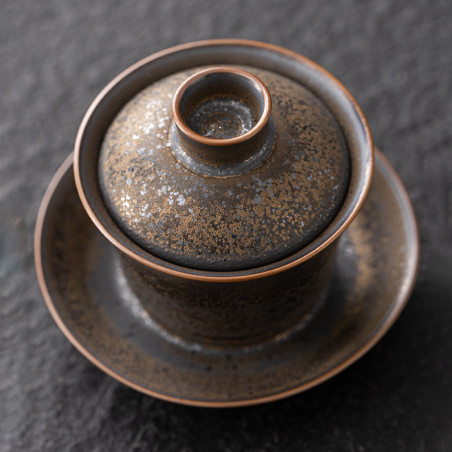 Ґайвань виготовлена з кераміки з ефектарним покриттям під іржавий метал. Кришку зліплено таким чином, щоб триматися на бортику на тілі гайвані, як показано на фотографії.