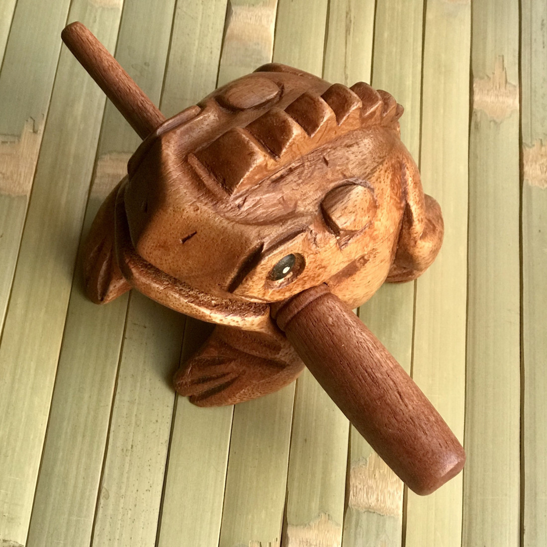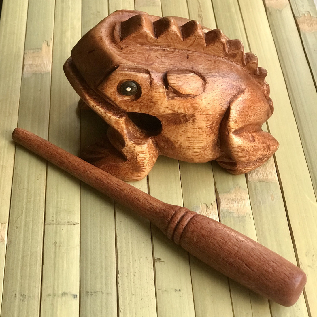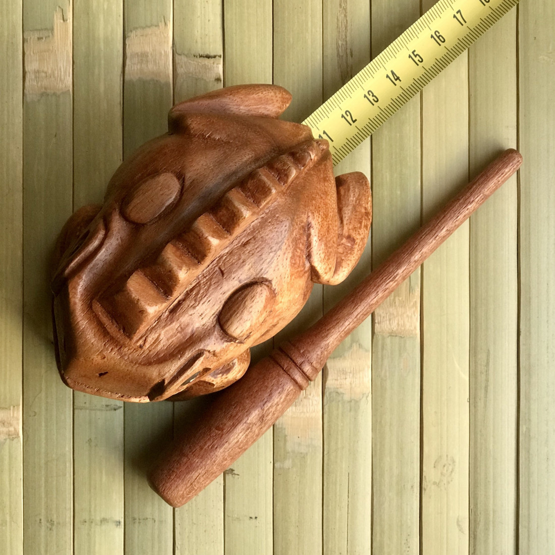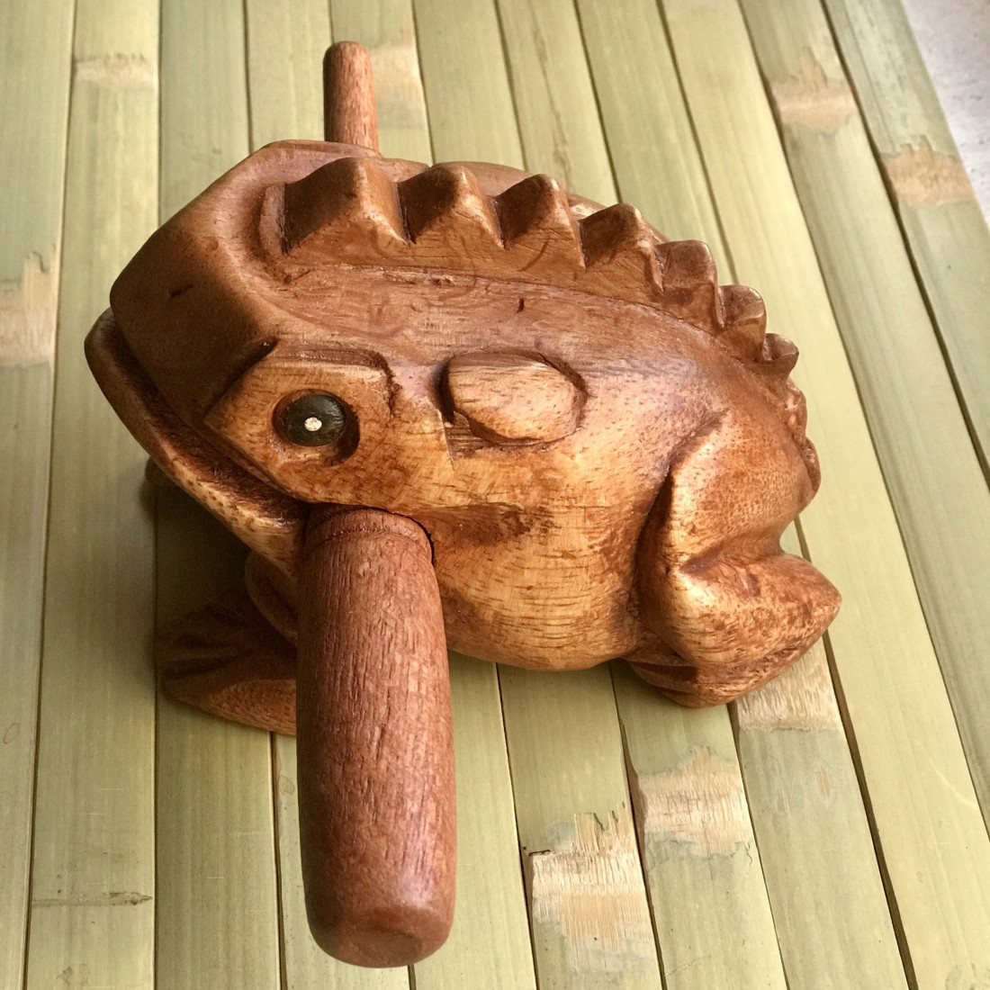 Дерев'яна іграшка, яка видає звуки. Варто лише паличкою провести по спинці і жаба заквакає.