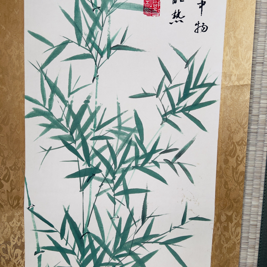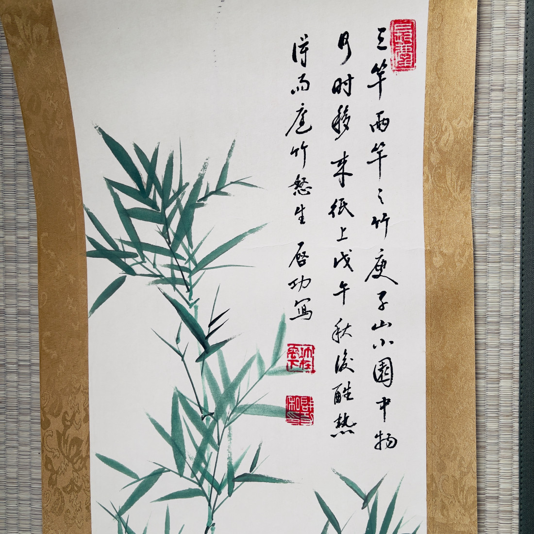 Сувій з репродукцією картини із зображенням бамбука та чудовою каліграфією.
