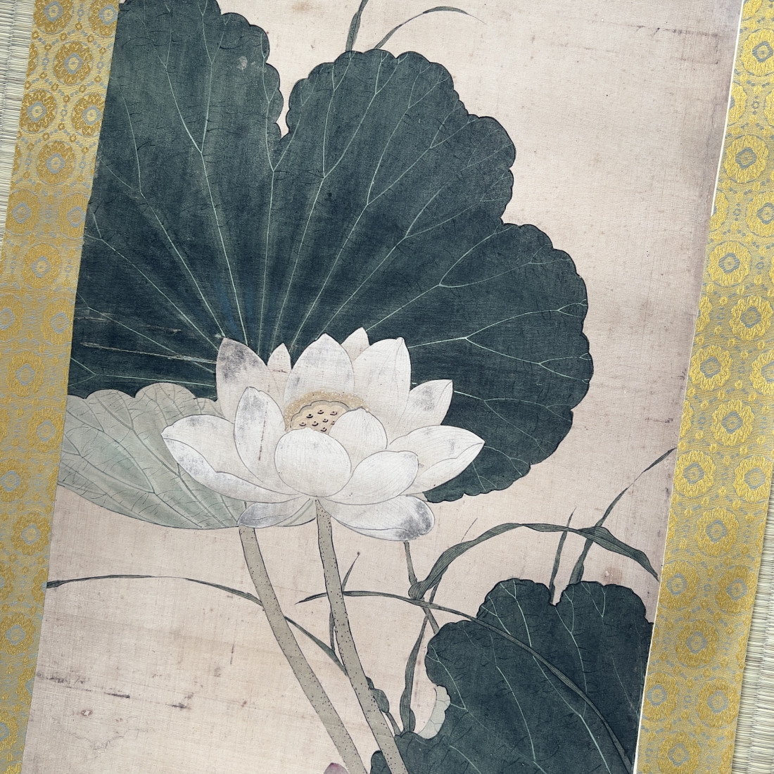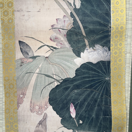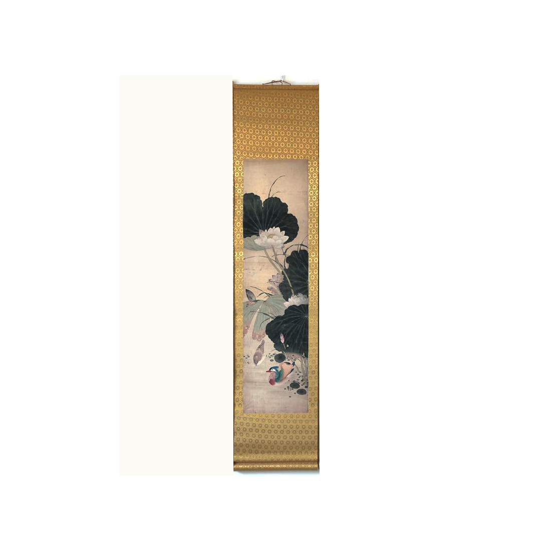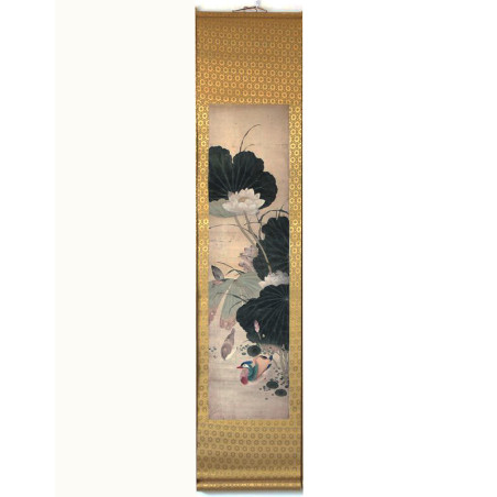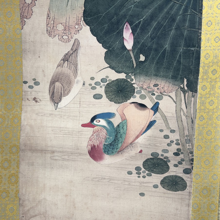 Сувій з репродукцією картини із зображенням літнього цвітіння лотоса та качок мандаринок.
