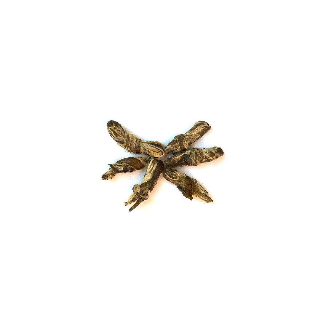 Пов'язаний вручну у вигляді метелика. Приблизно на третій заварці метелики розв'яжуться, і чайник заповниться товстими бруньками. Чай заварюється дуже м'яко та довго.