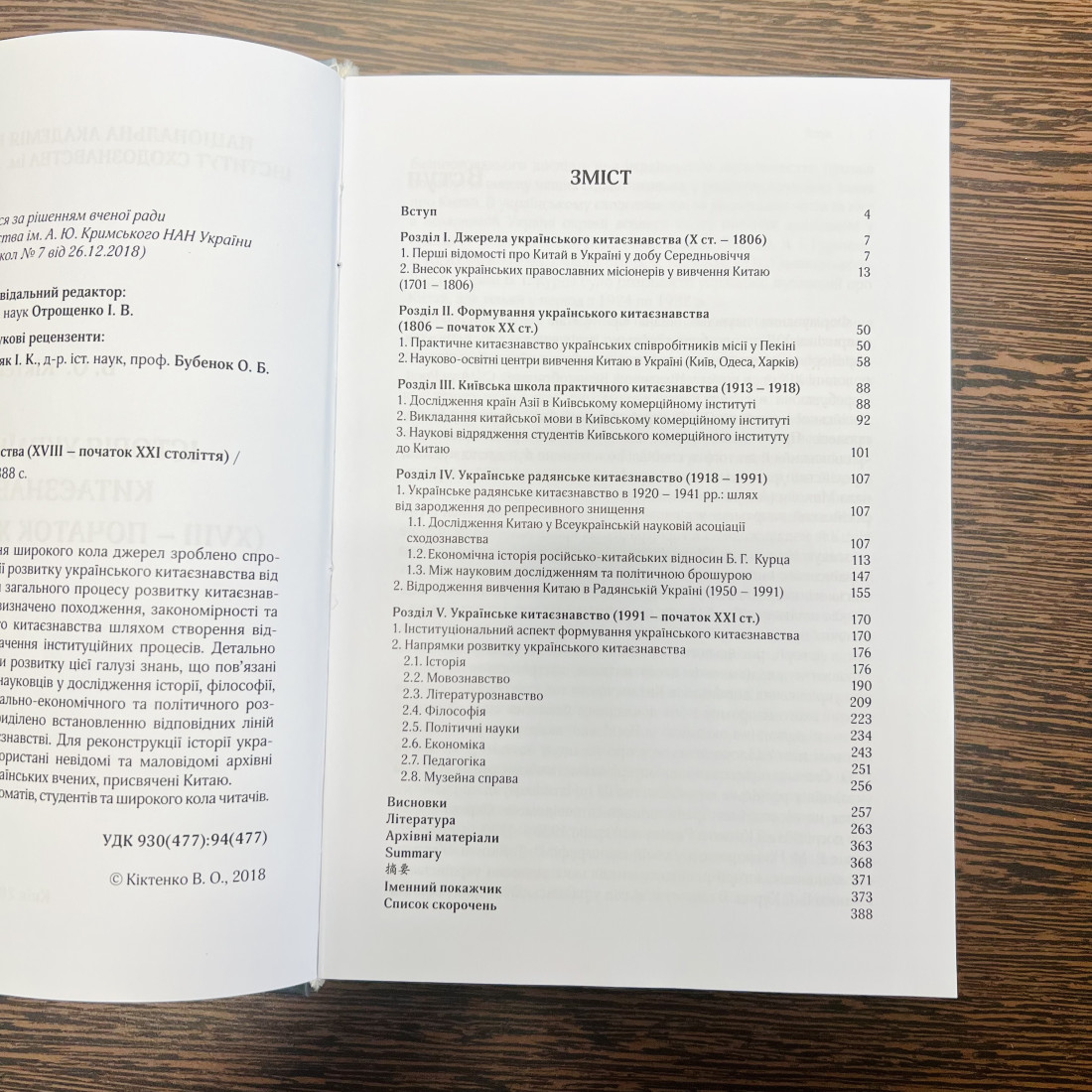 Історія українського китаєзнавства (XVIII – початок XXI століття). – Київ, 2018. – 388 с.