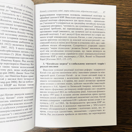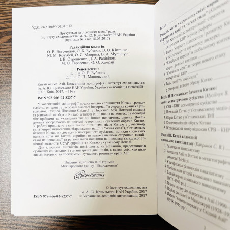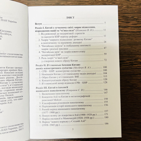 У колективній монографії представлено сприйняття Китаю громадськістю, елітами та засобами масової інформації в окремих країнах Центральної, Східної, Південно-Східної та Південної Азії. Показані складні та різноманітні образи Китаю, а також їхній вплив на контекст взаємодій між країнами та ухвалення тих чи інших політичних рішень. Дослідження зосереджено на вивчені історичних і сучасних образів Китаю. У роботі приділено увагу таким питанням: місце Китаю у сучасному світі (мирне піднесення, відродження нації та “м’яка сила”), в’єтнамське бачення Китаю як досвіду асиметричного сусідства, погляди японських паназіатистів на Китай, сприйняття казахстанською стороною китайської національної та регіональної політики на прикладі казахської етнічної спільноти СУАР, сприйняття Китаю у сучасному Непалі. Для істориків, лінгвістів, політологів, китаєзнавців, представників суміжних соціальних і гуманітарних дисциплін, а також усіх, хто цікавиться історією та проблемами сучасного розвитку країн Азії.