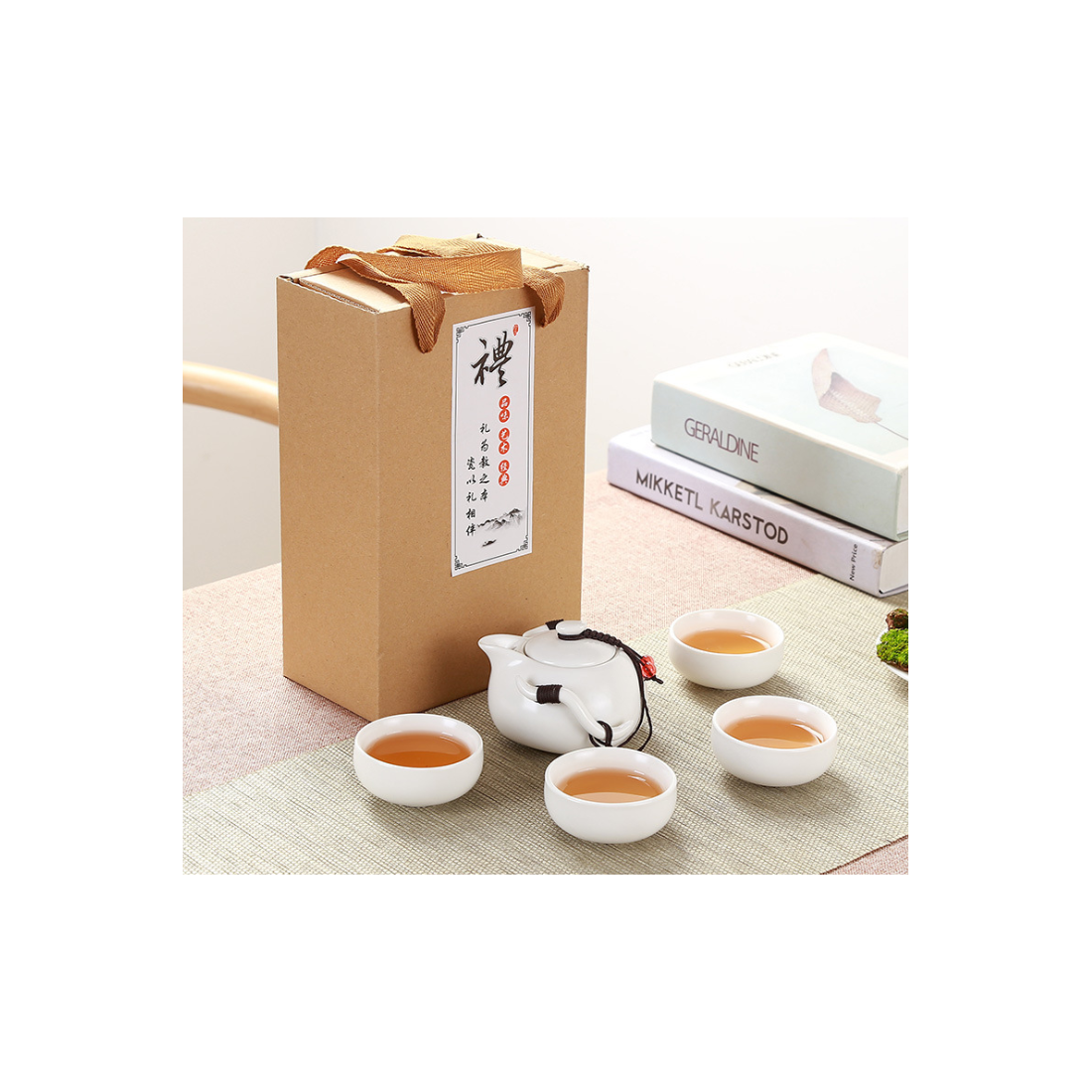 До набору входять: чайник (150 мл), 4 чаші (30 мл). Посуд упакований у подарунковій коробці з ручкою.