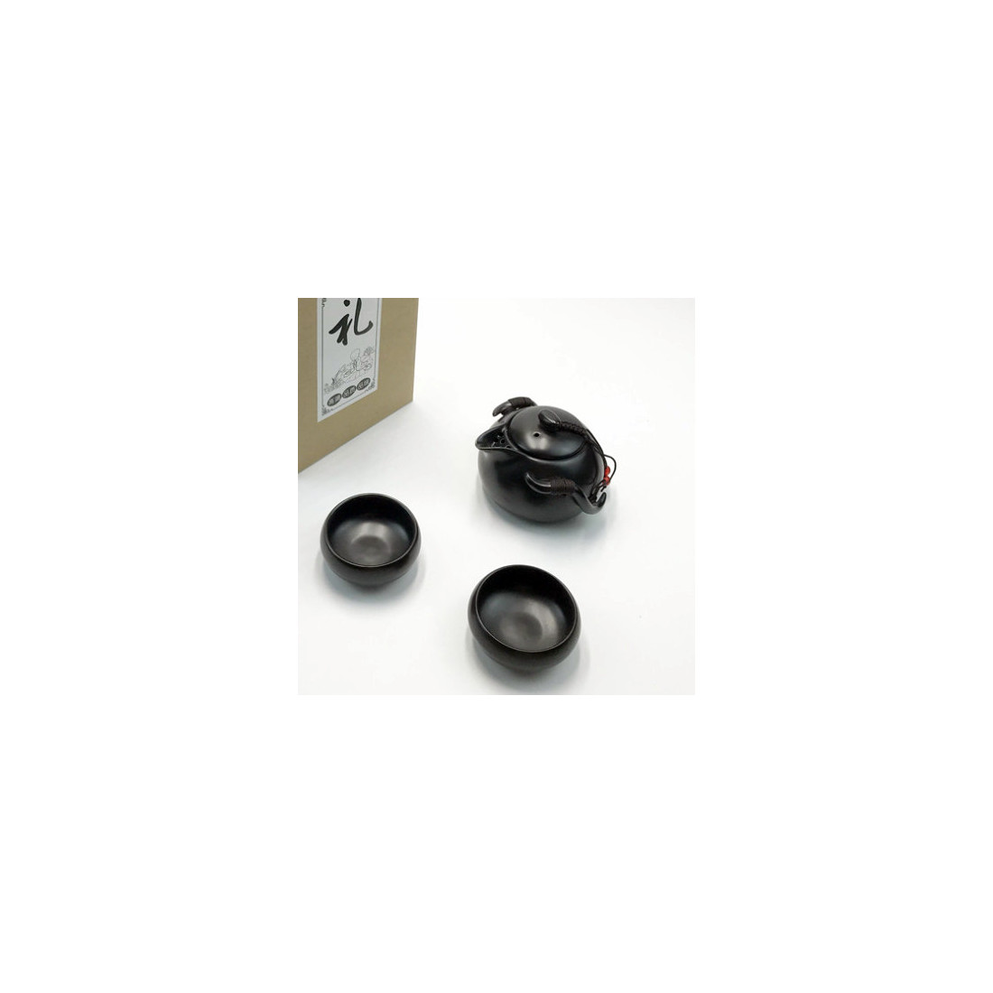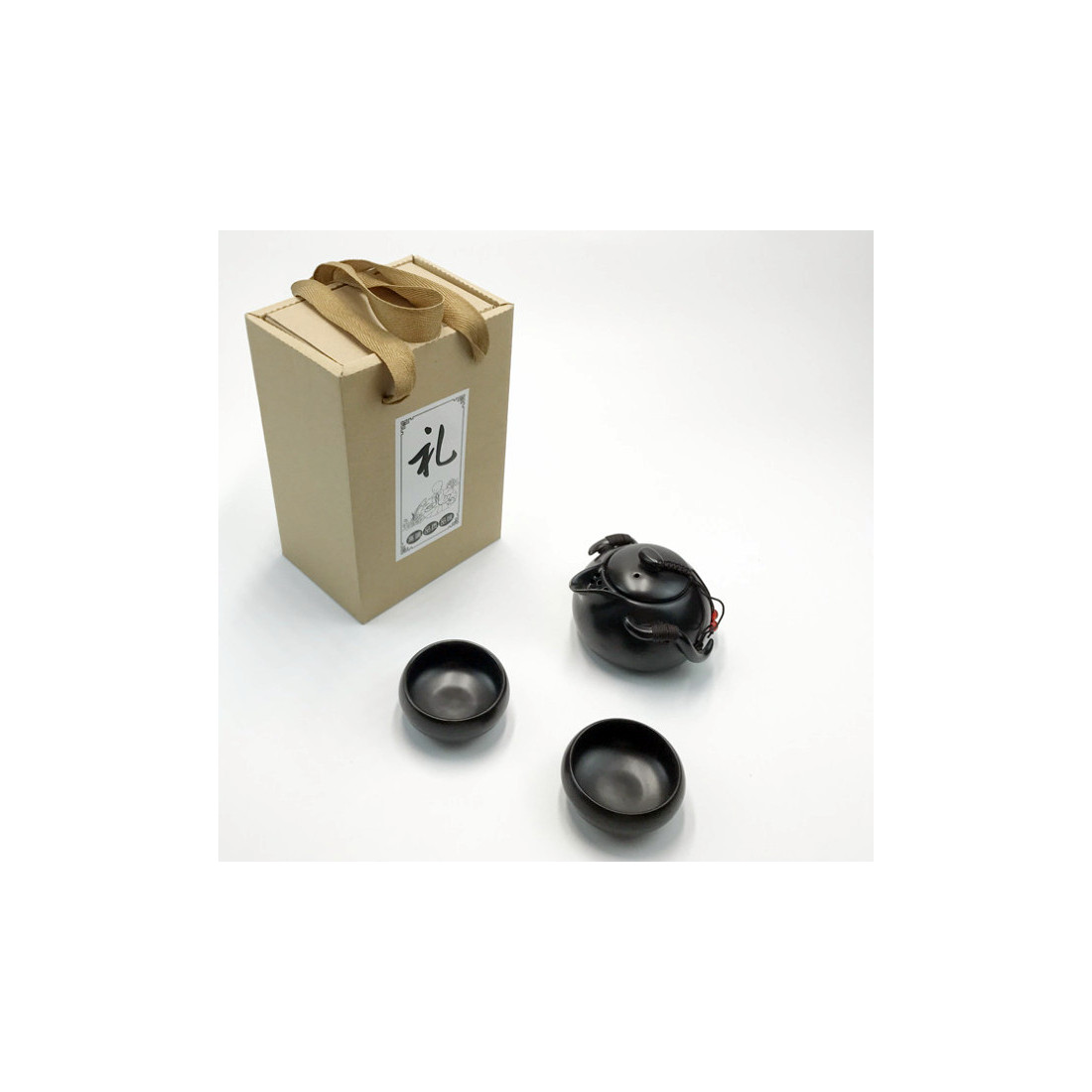 Чорний чайник-гайвань та 2 чаші в подарунковій коробці