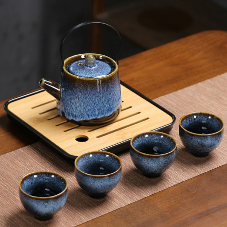 У набір входять: сумка, чабань 19*19 см, рушник та дерев'яні щипці, чайник (315 мл) та 4 чаші (60 мл).