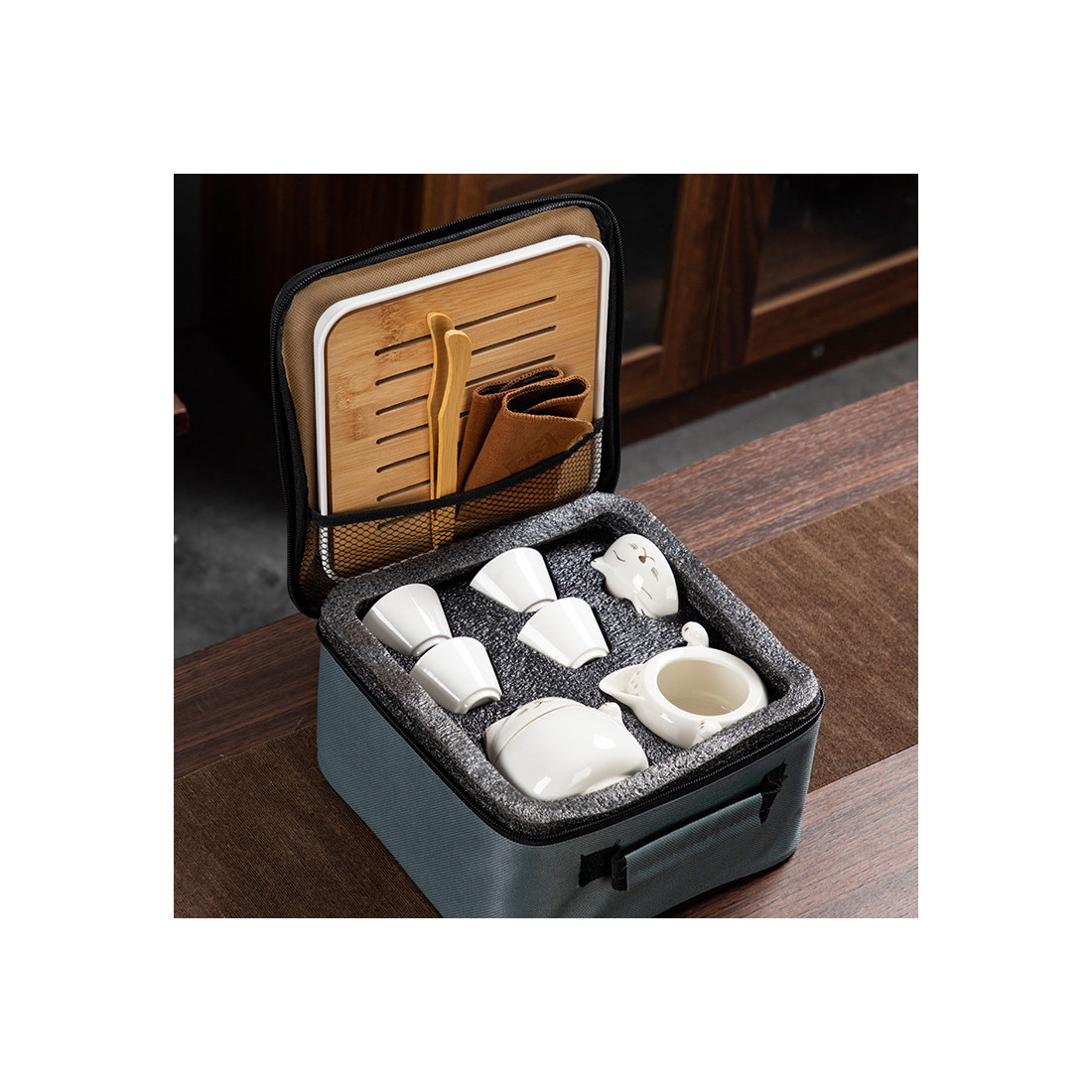 У набір входять: сумка, чабань 19*19 см, рушник та дерев'яні щипці, чайник (180 мл), чайниця та 4 чаші (корисний об'єм – 25 мл, повний – 40 мл).
