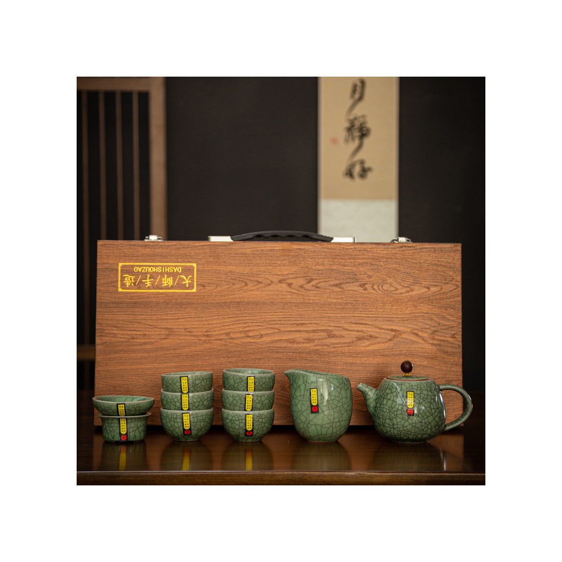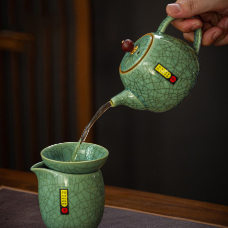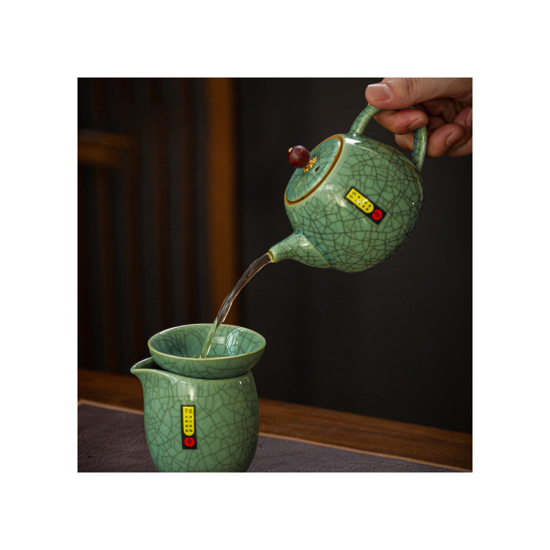 Набір чайного посуду з ґеяо кольору зеленої сливи в чемодані